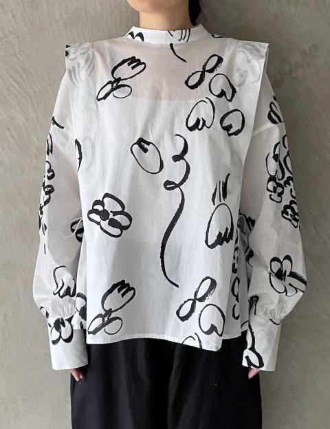 殴り書きの思惑 プリントタックトップス
