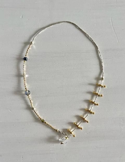 ラブラドライト×水晶×ゴールドパーツ ネックレス (gcn-05)