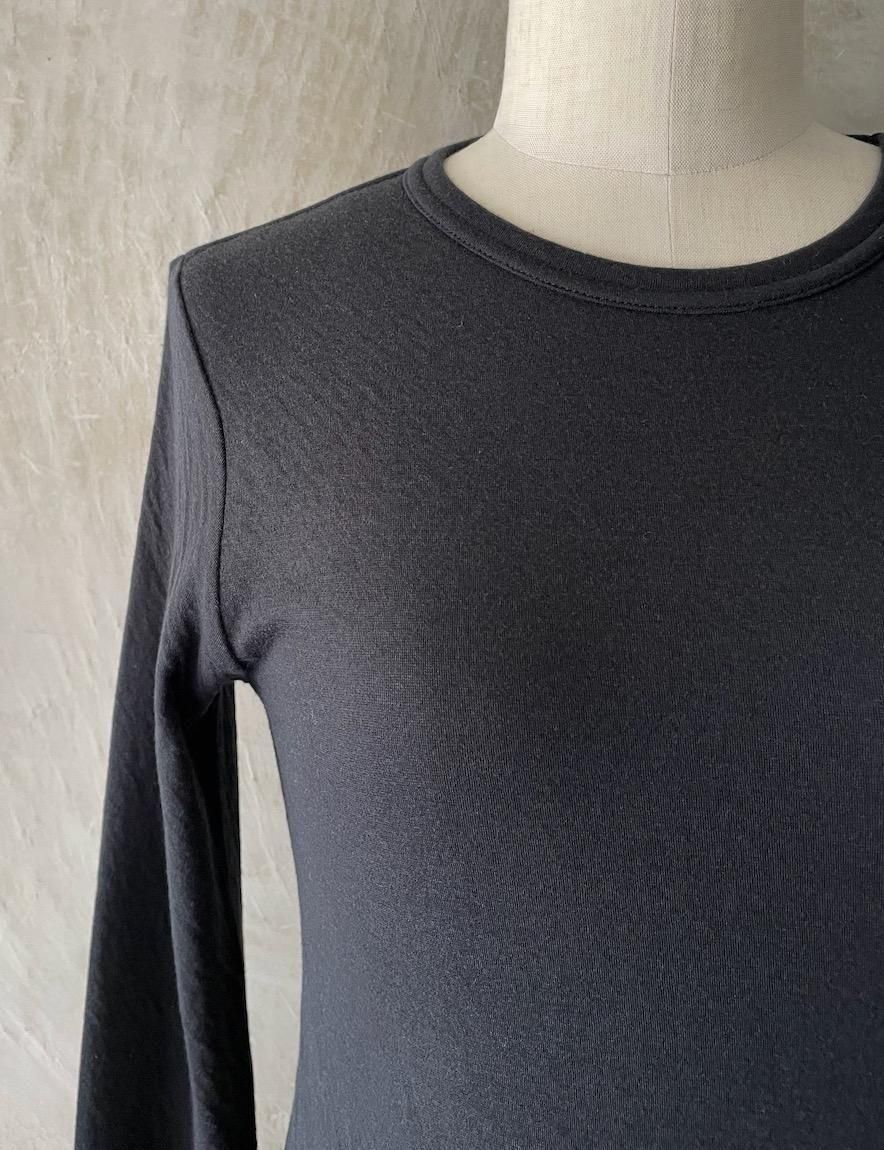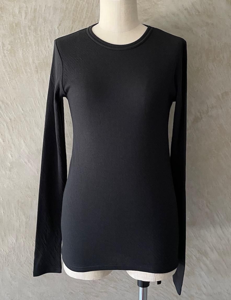 体のラインに沿うシルエットで、暖かく冬場のインナーとしても大活躍します。