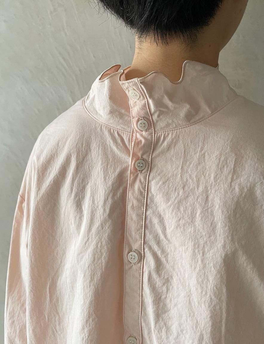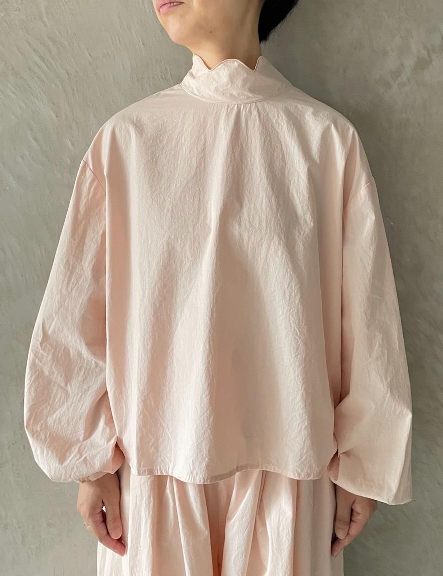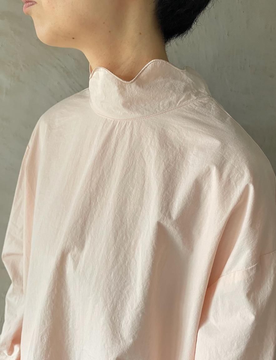 ハイネックにシンプルなスカラップ刺繍を施したブラウス。
