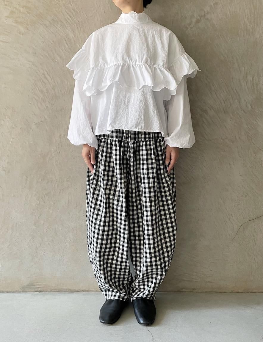 同素材のブラウス(JOU JOU 2WAY BLOUSE)と合わせていただくのもおすすめです。