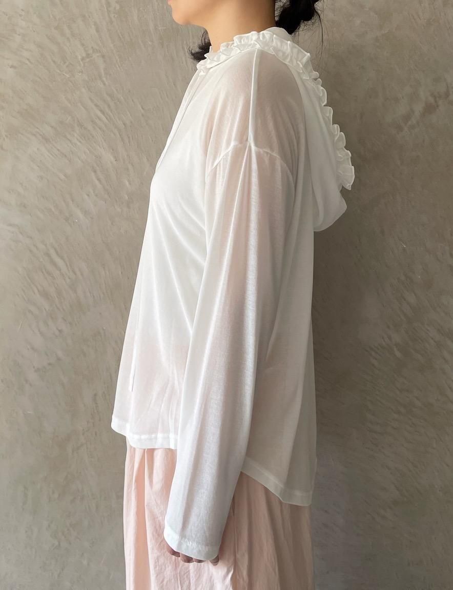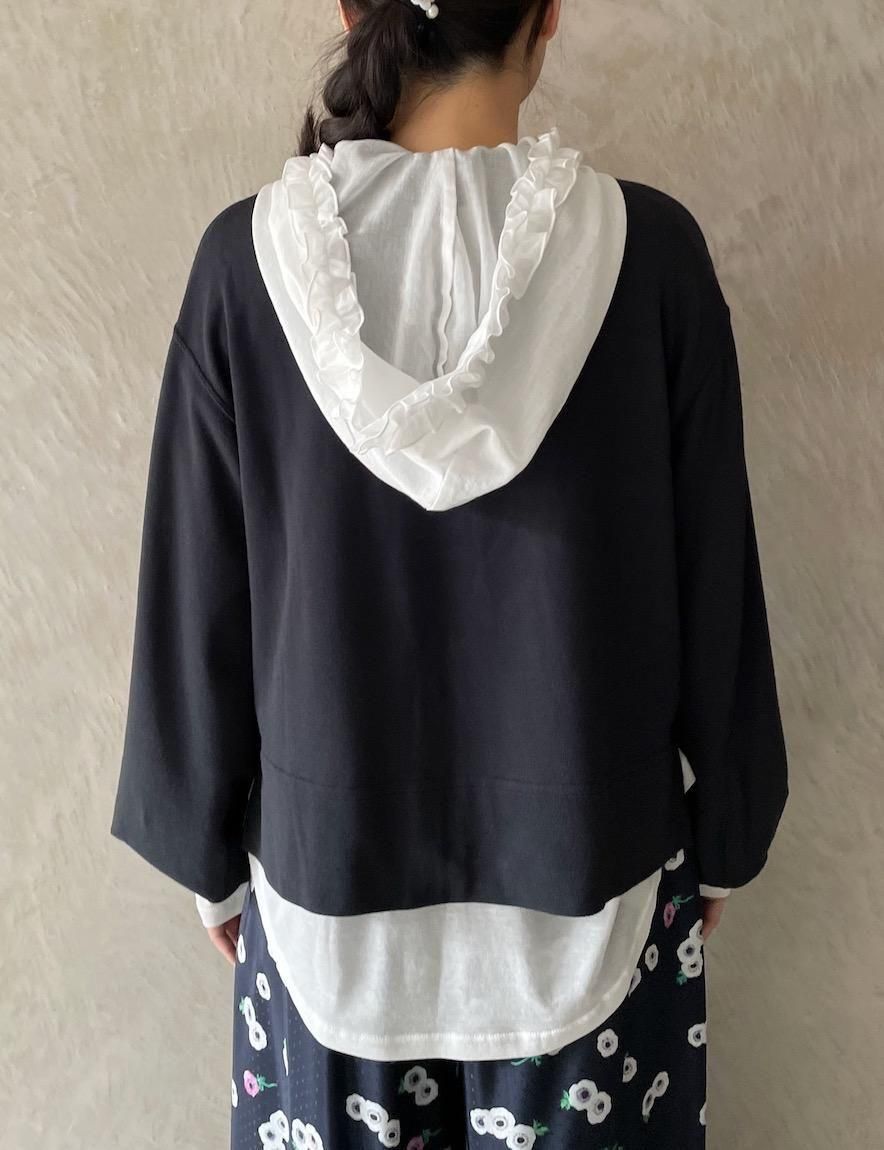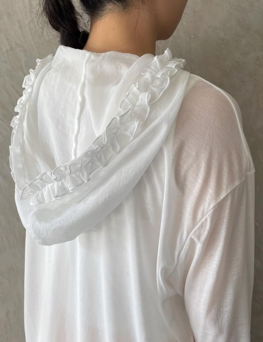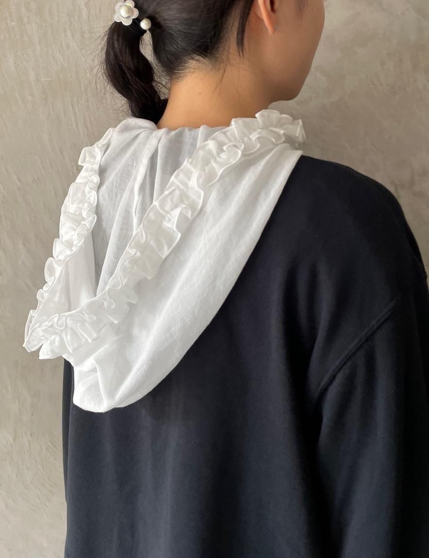 コットンシフォンのフードにはぐるりとフリルがあしらわれています。