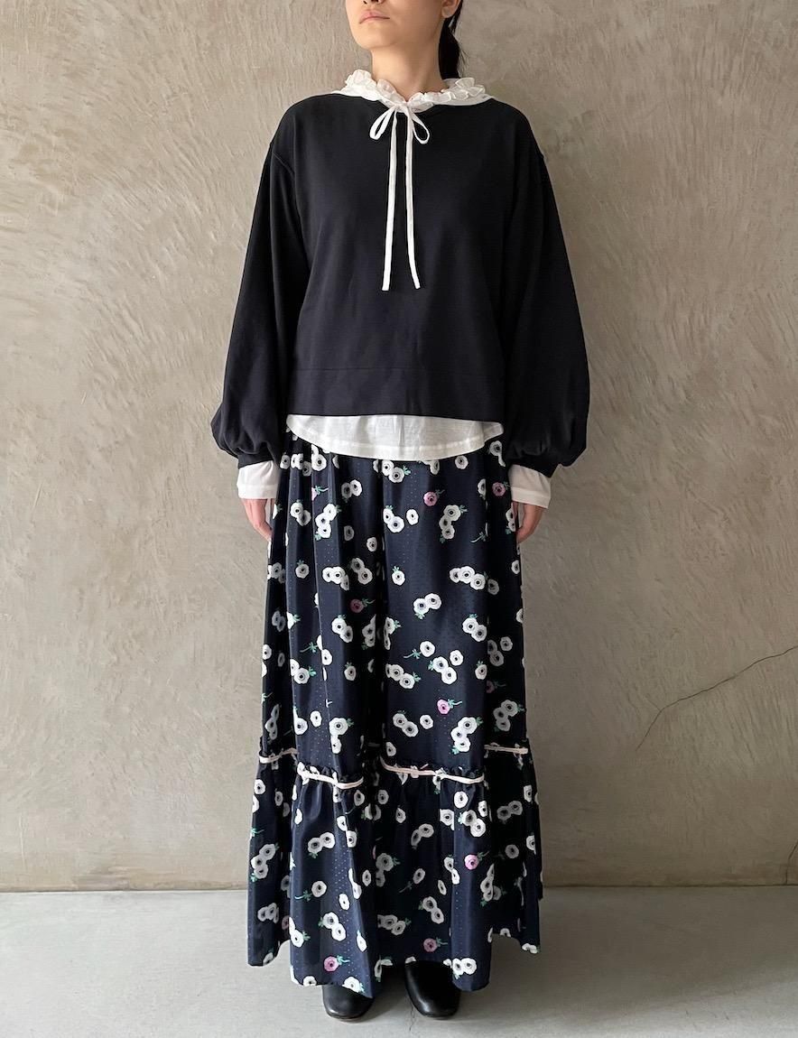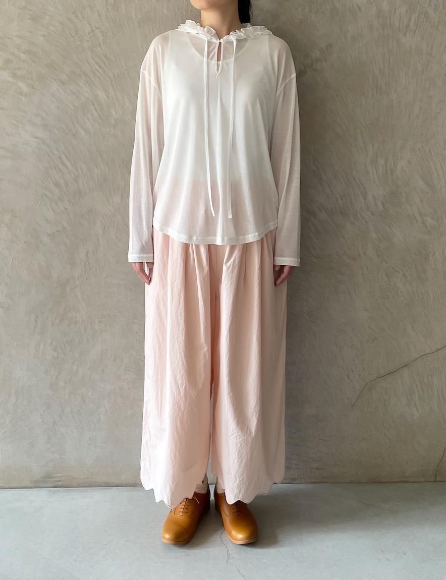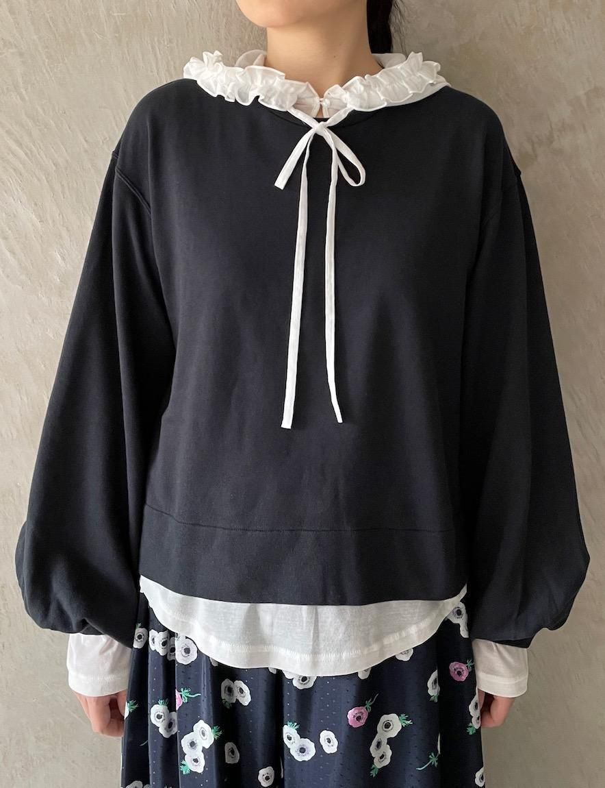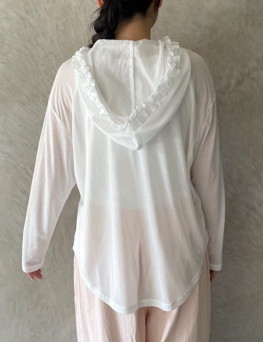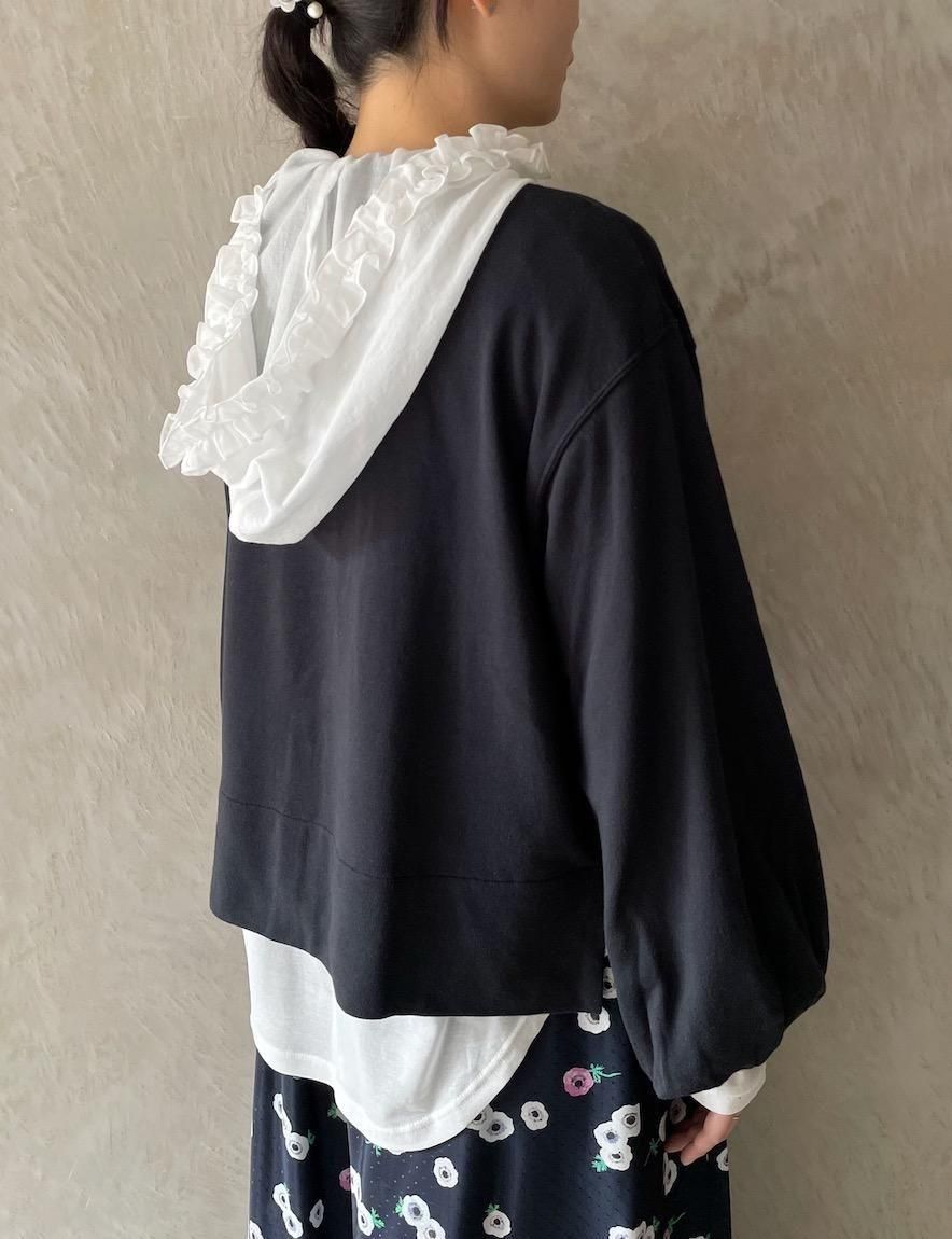 コットンシフォンのフードにはぐるりとフリルがあしらわれています。