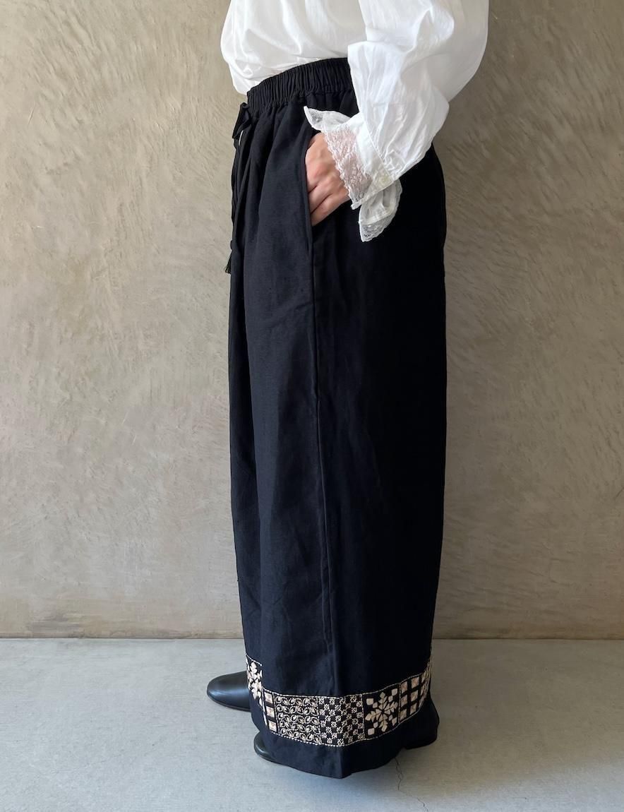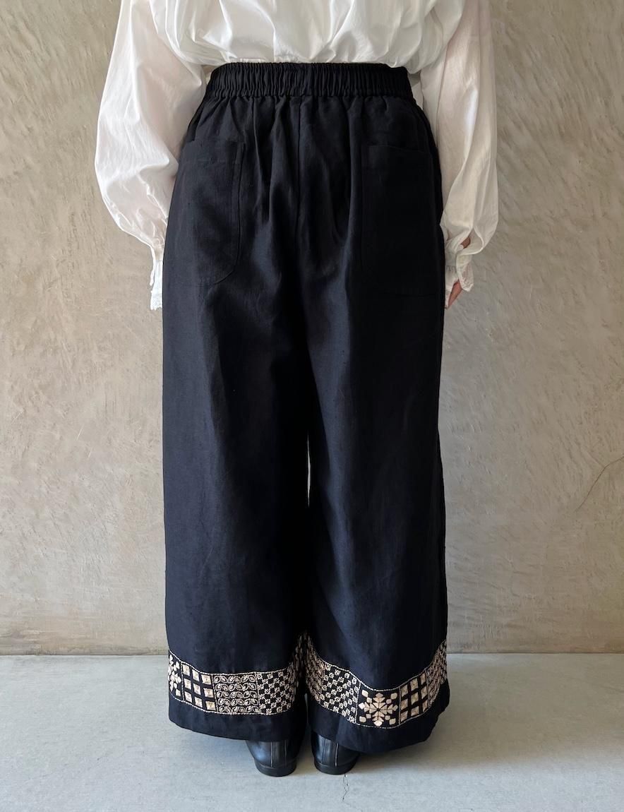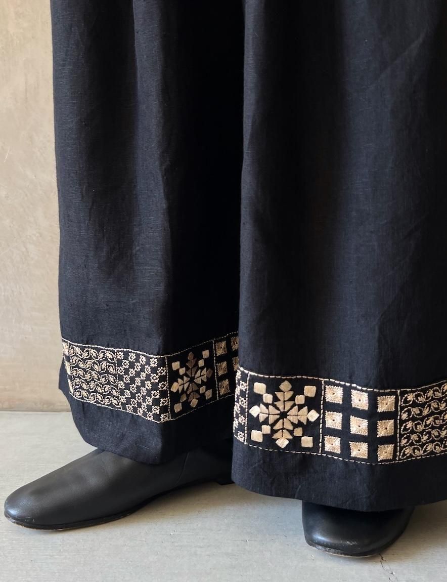 Kahdi Linen & Embroidery Tuck Pants (Black)