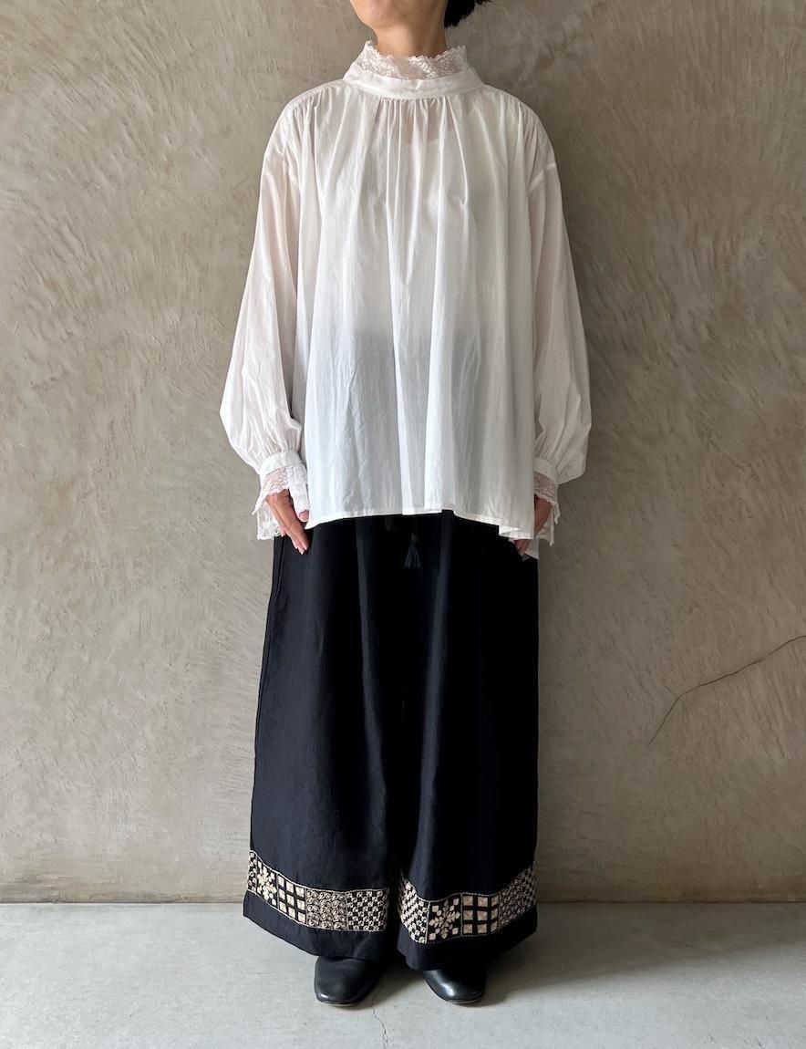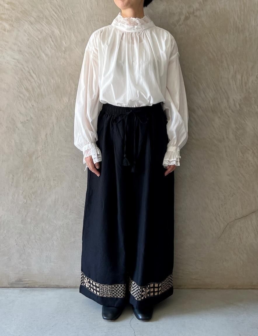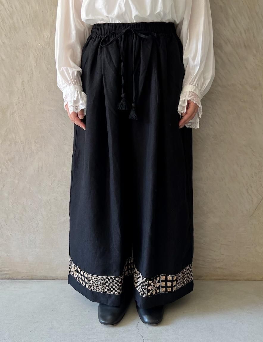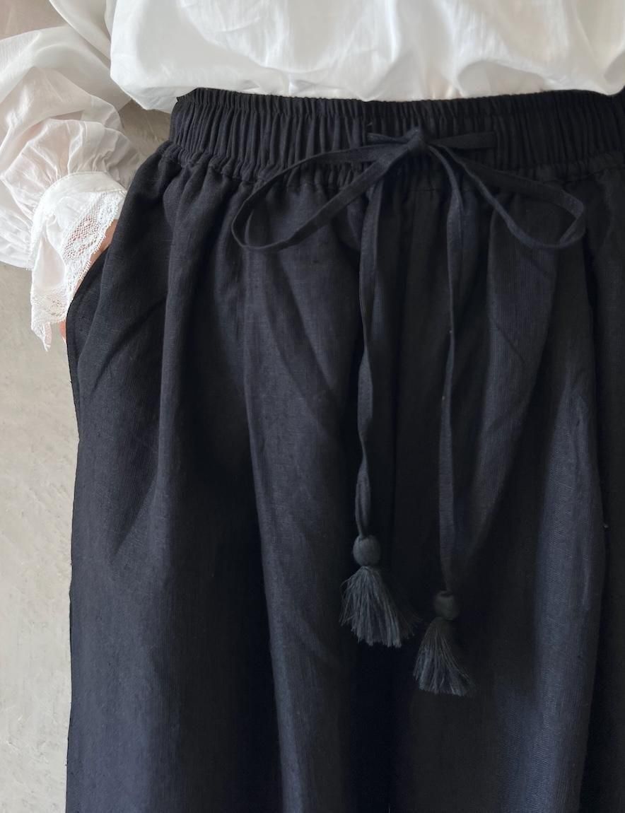Kahdi Linen & Embroidery Tuck Pants (Black)