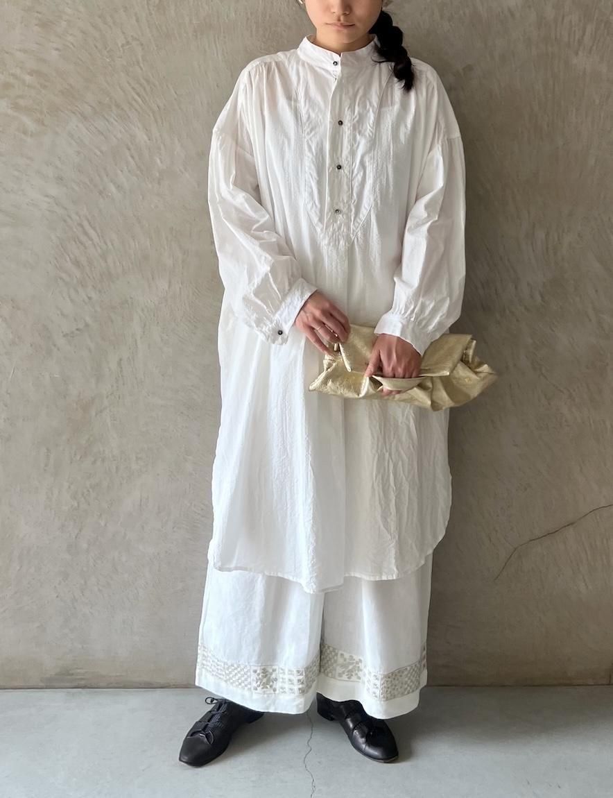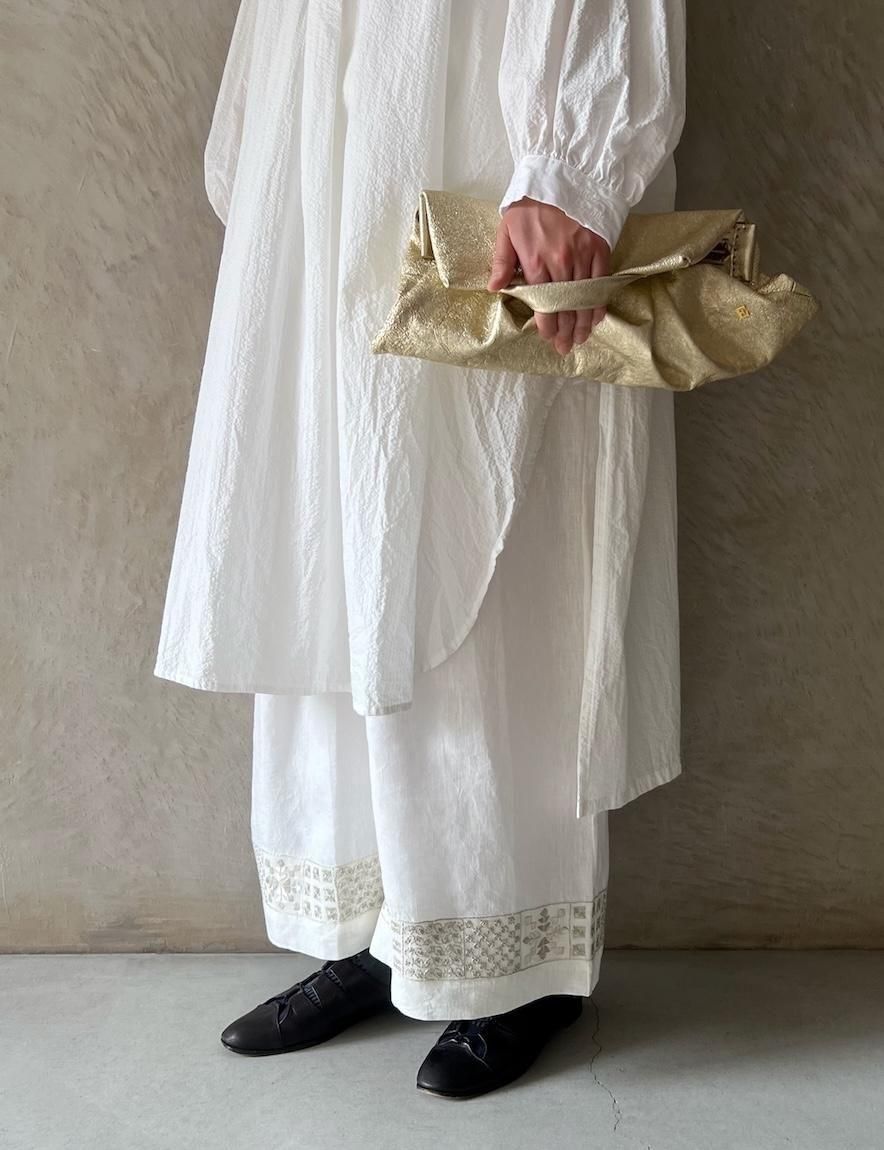 Kahdi Linen & Embroidery Tuck Pants (Off White)