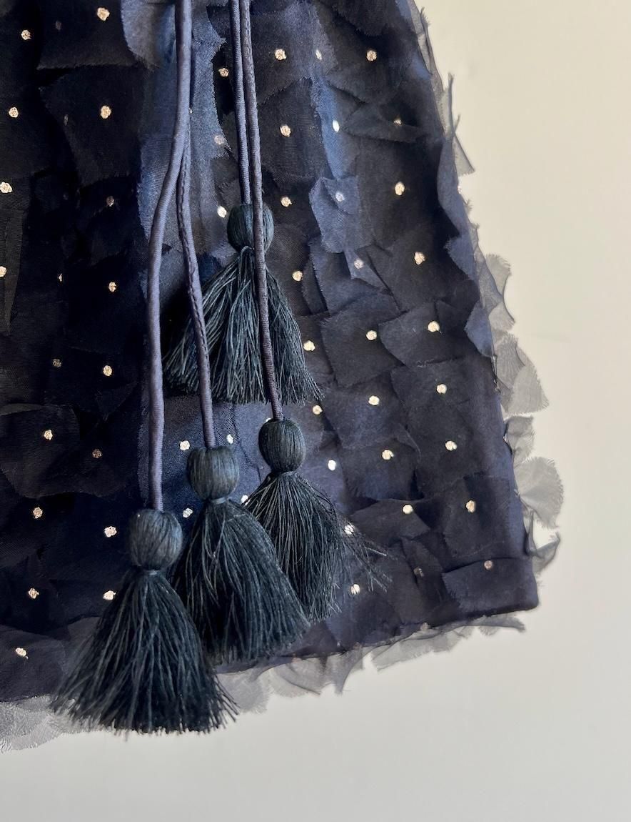 巾着を絞る紐の先にもタッセルがあしらわれて、BUNONらしいこだわりが詰まっています。