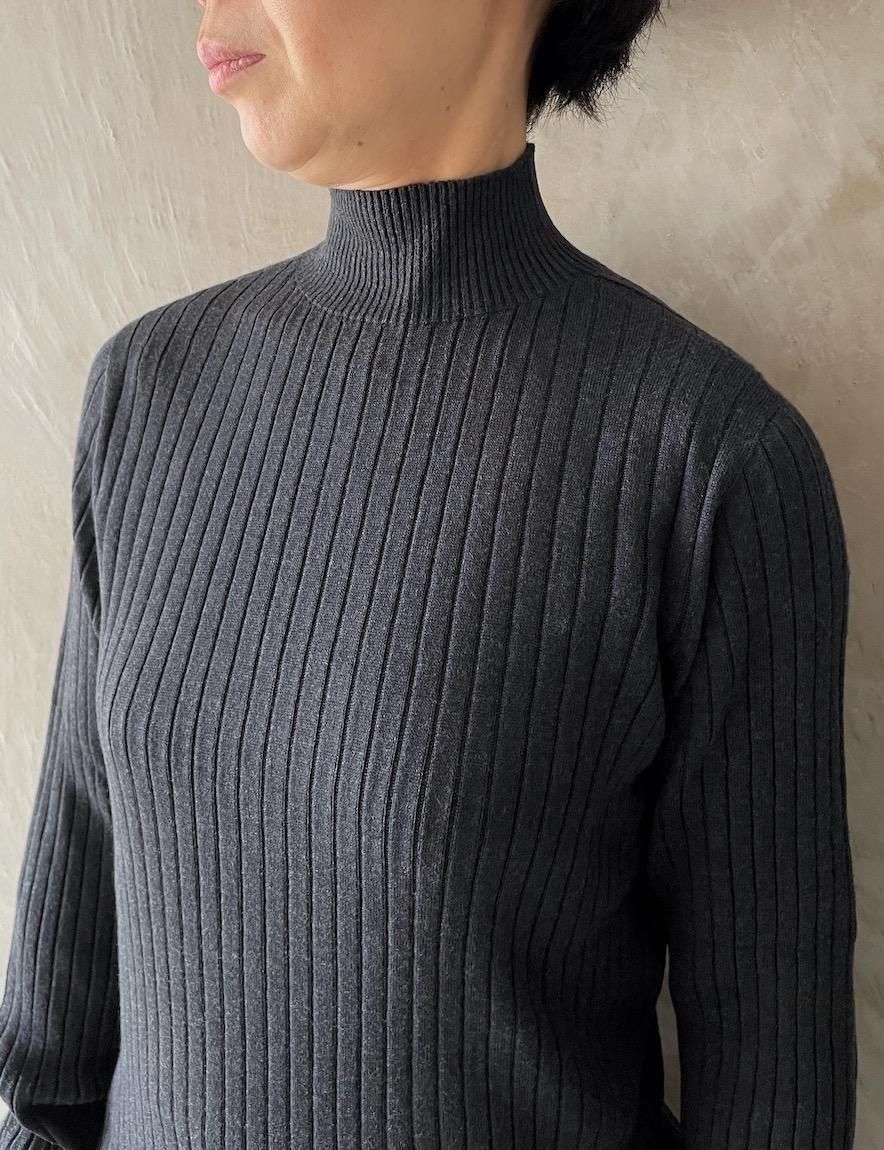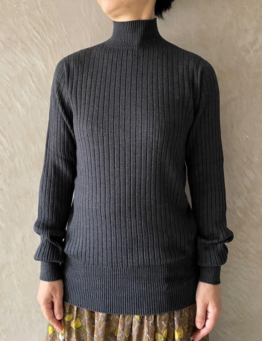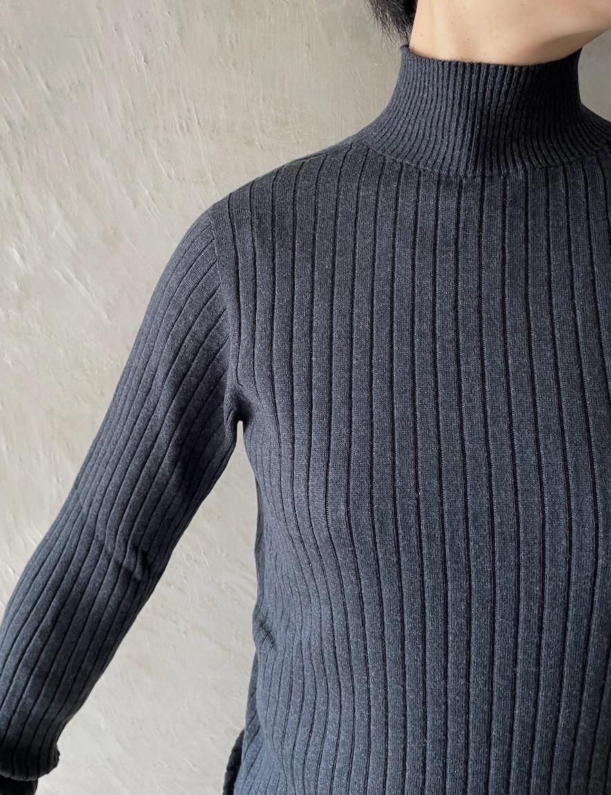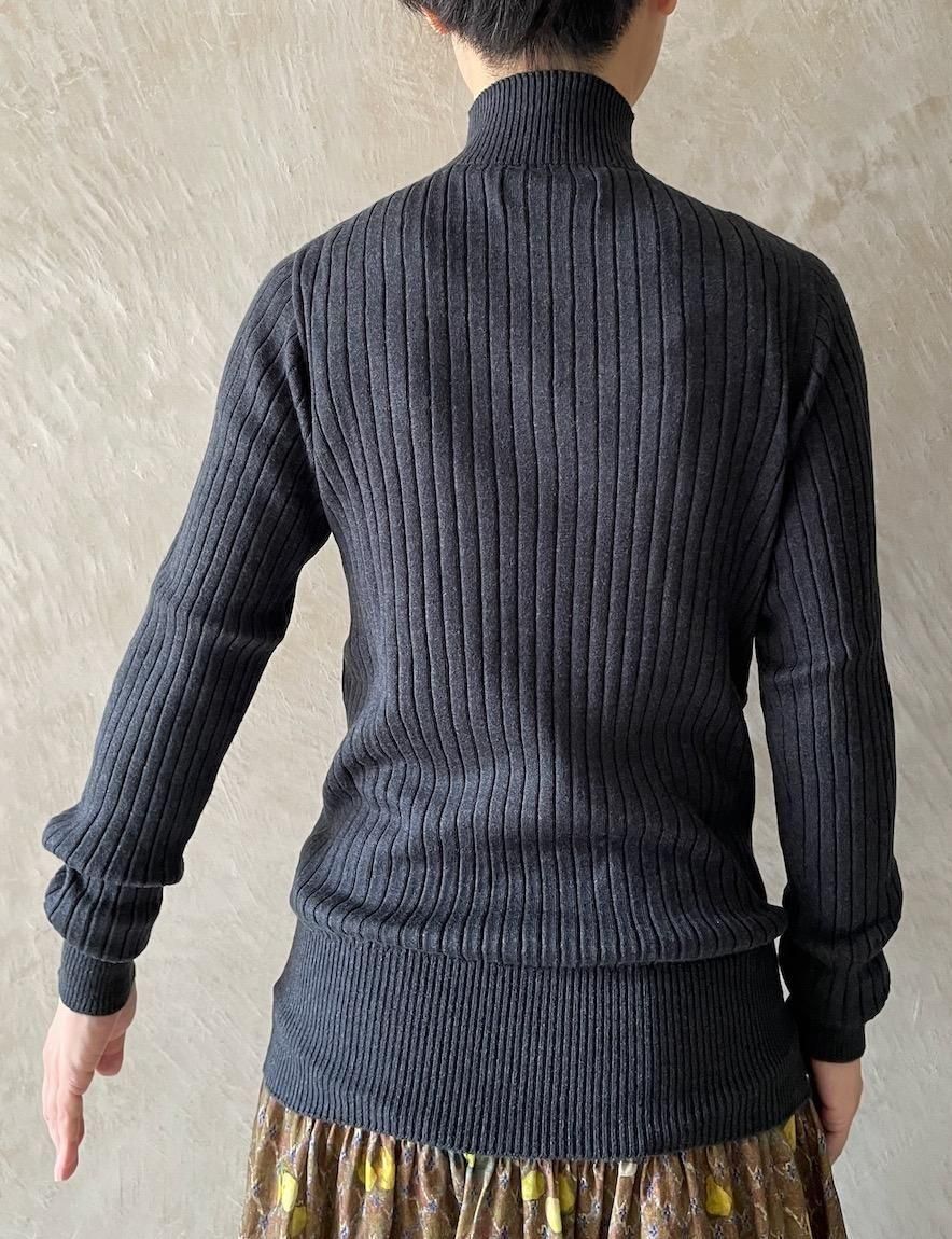 やや細めのリブをホールガーメントで程よいフィット感が出るよう