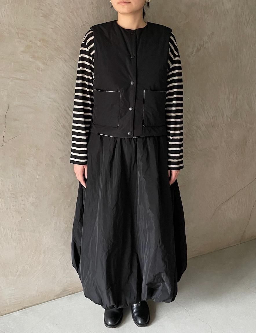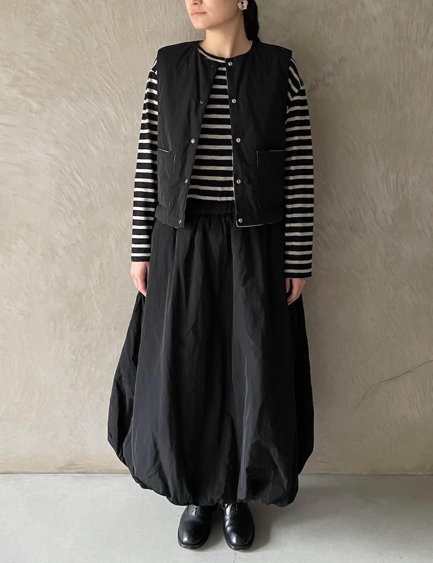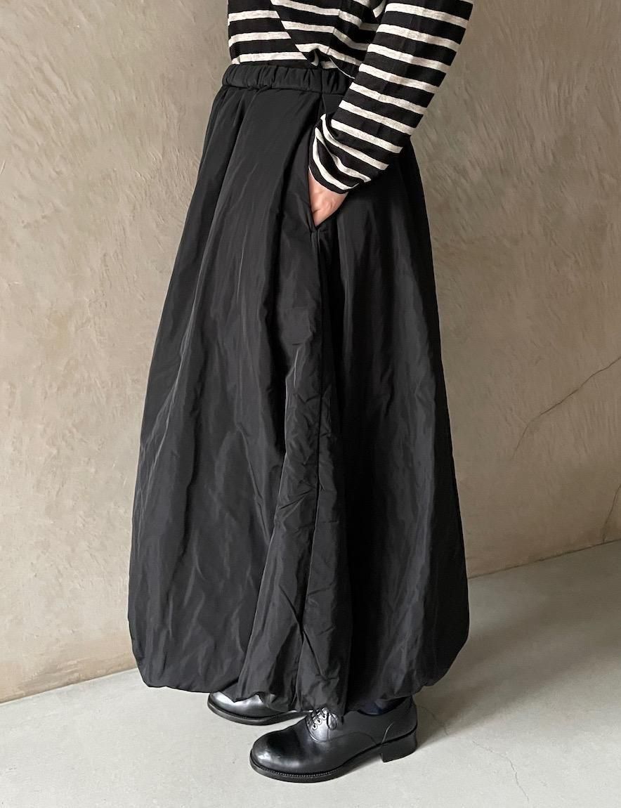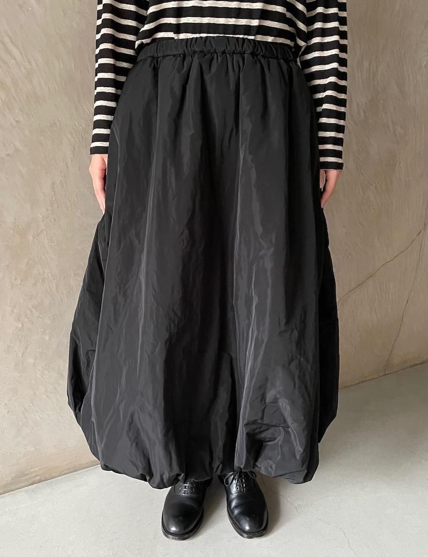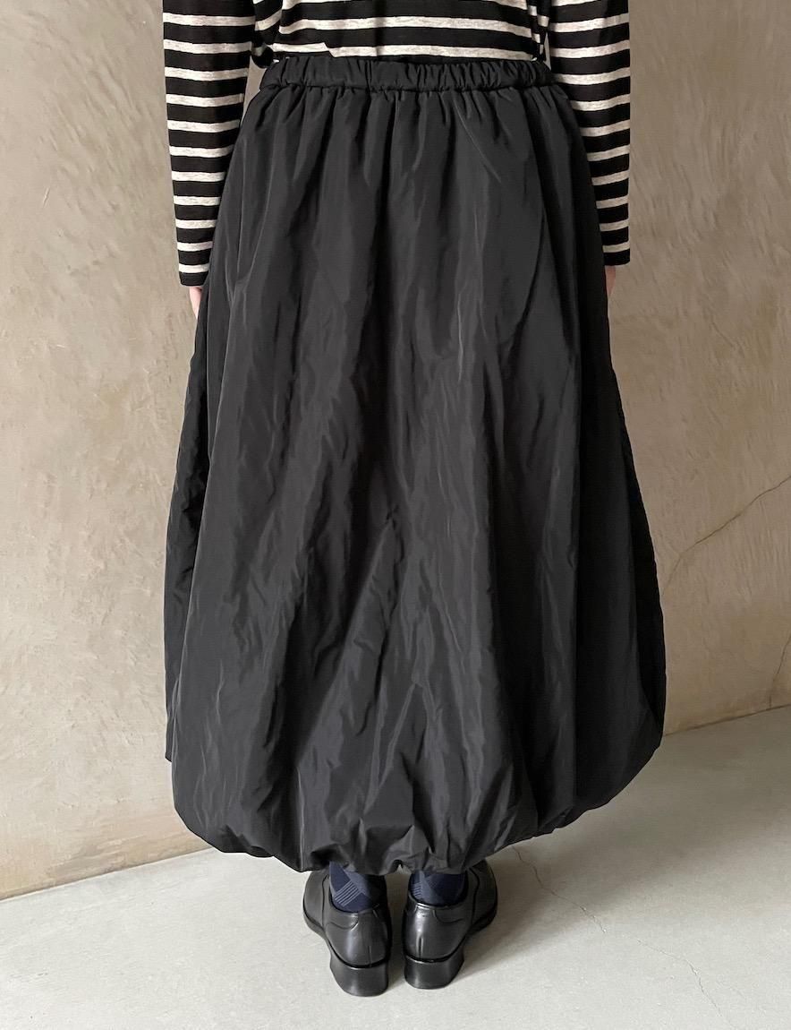 ややロング丈で、ふんわりしたボリューム感のあるバルーンスカートは個性的で