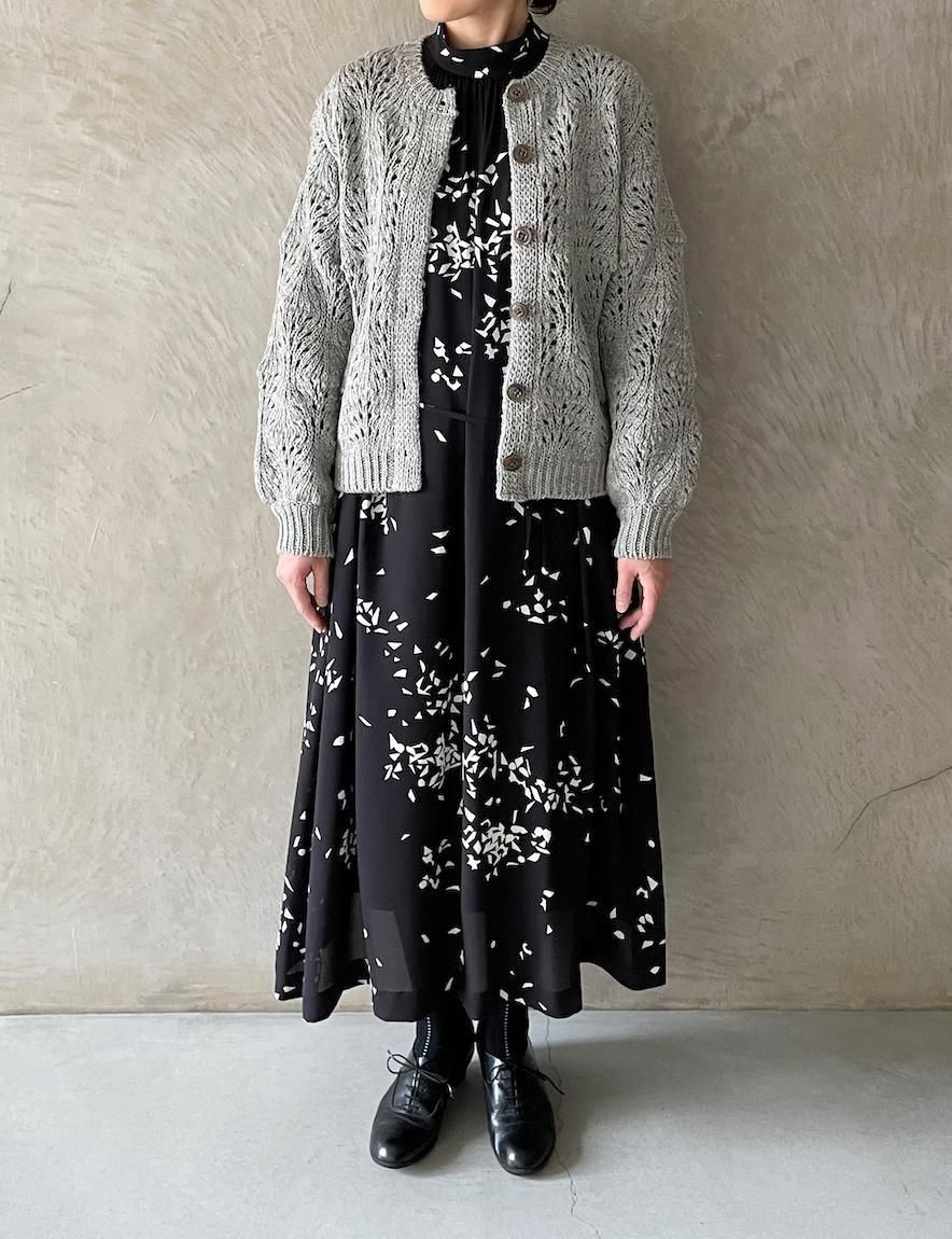 総柄のドレスなど華やかなアイテムとも相性が良く、