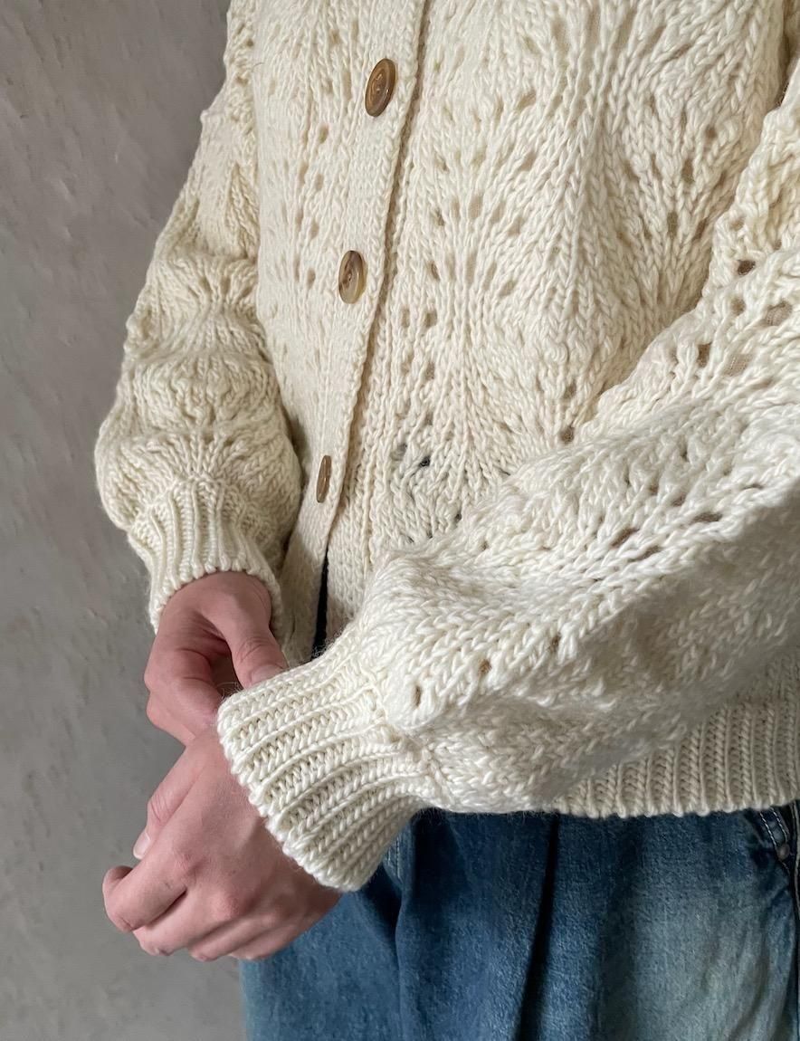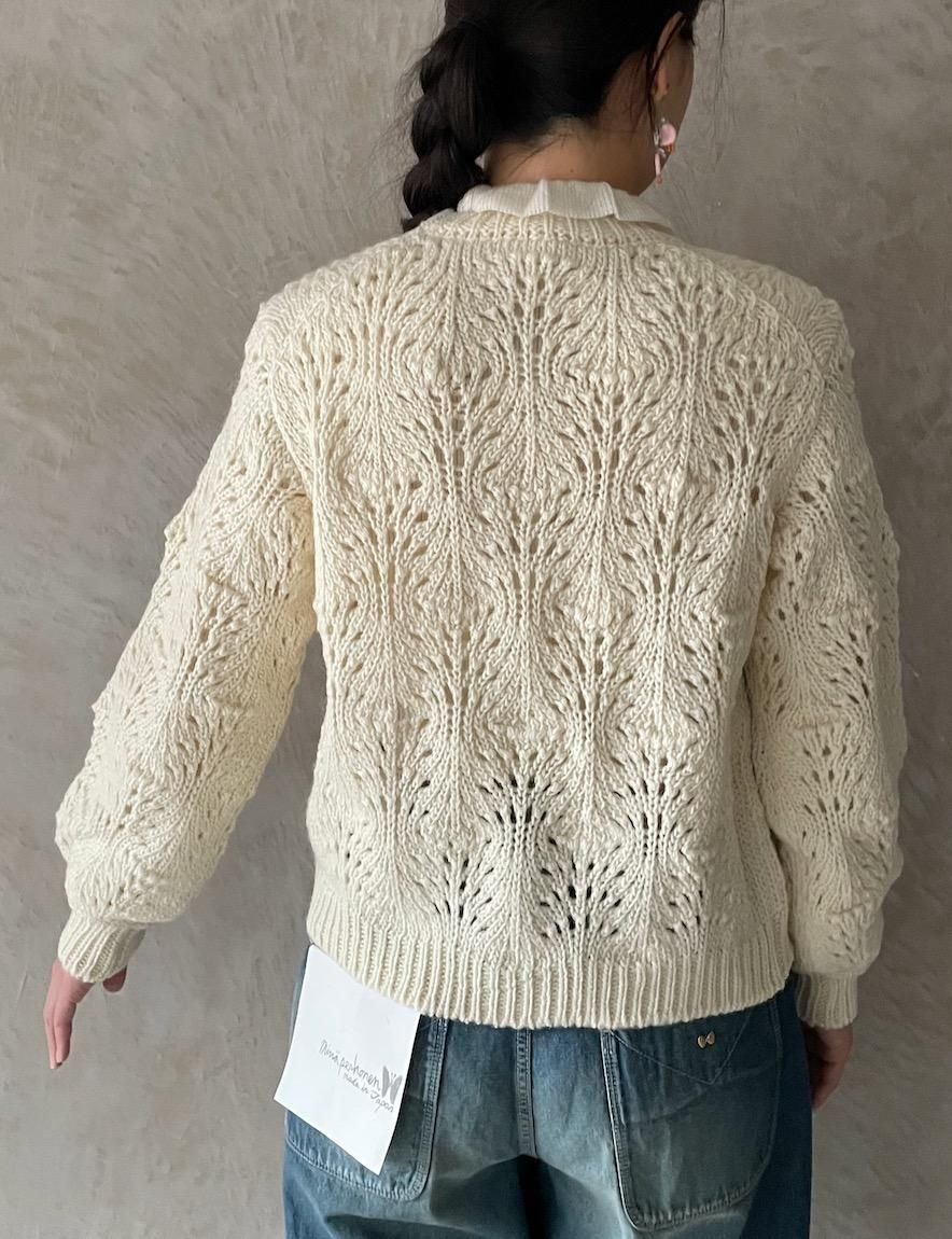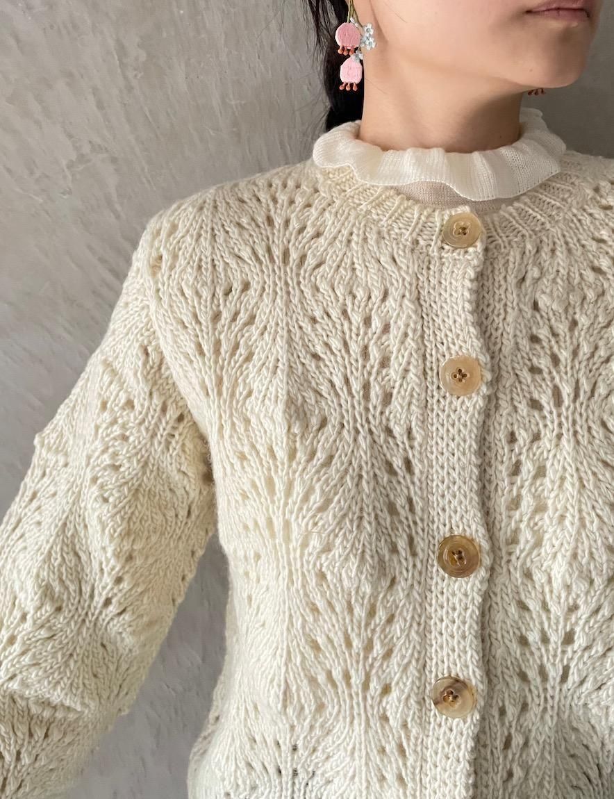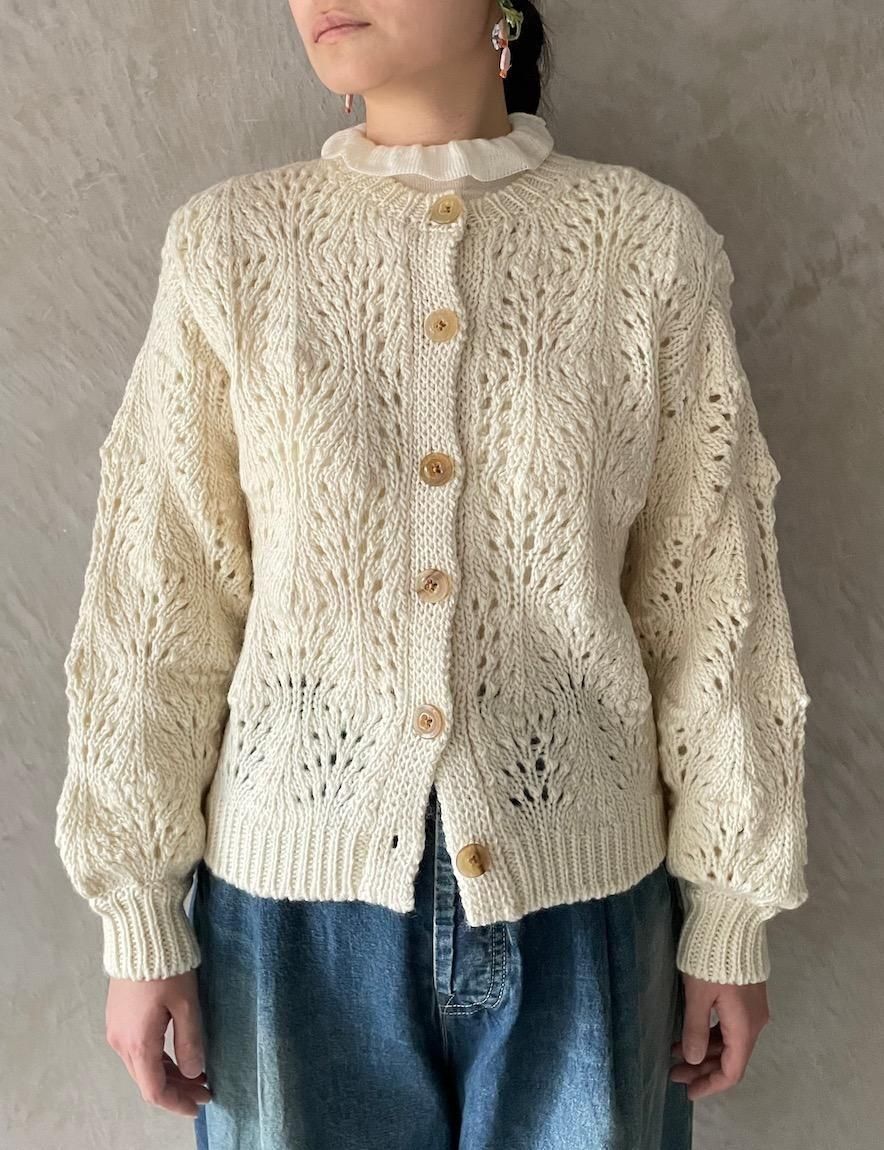 どこか懐かしい透かし編みのカーディガンです。