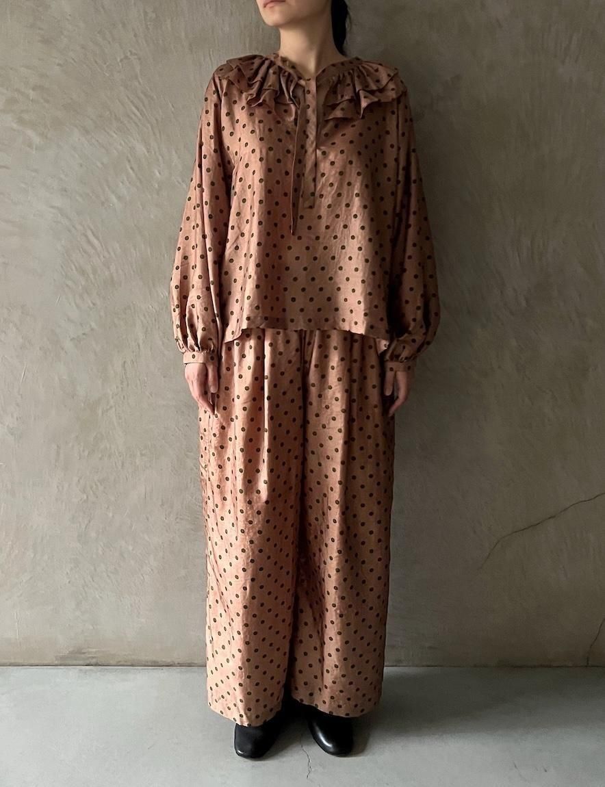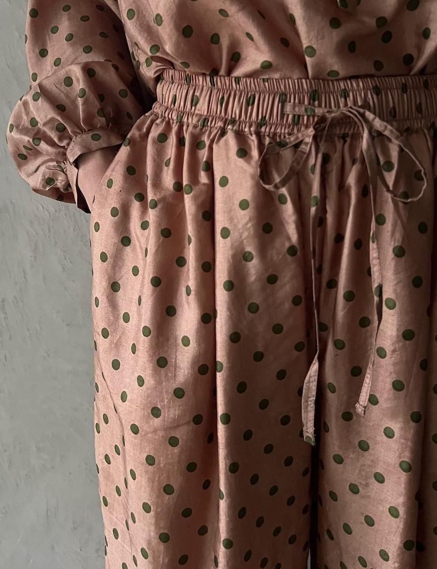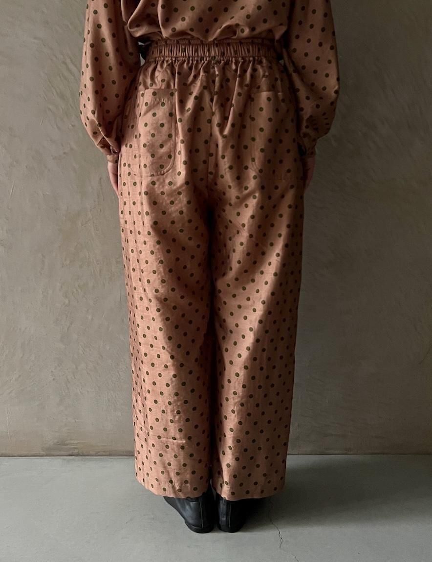 Khadi Silk Polka dots Print Tuck Pants (C.Brown)