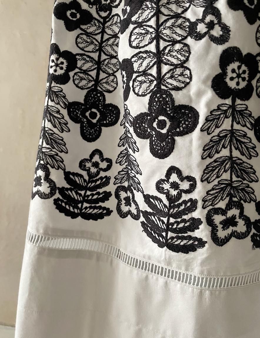 細かなラインで描かれた草花の刺繍が広がる“swing garden(スイング ガーデン)”。