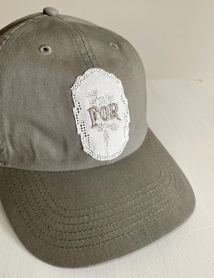 キャップのフロントには、繊細なレースモチーフを丁寧に縫い付け、