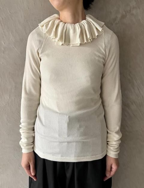すっきりとしたノーカラーデザインなので、タートルやブラウスの襟を見せたり、