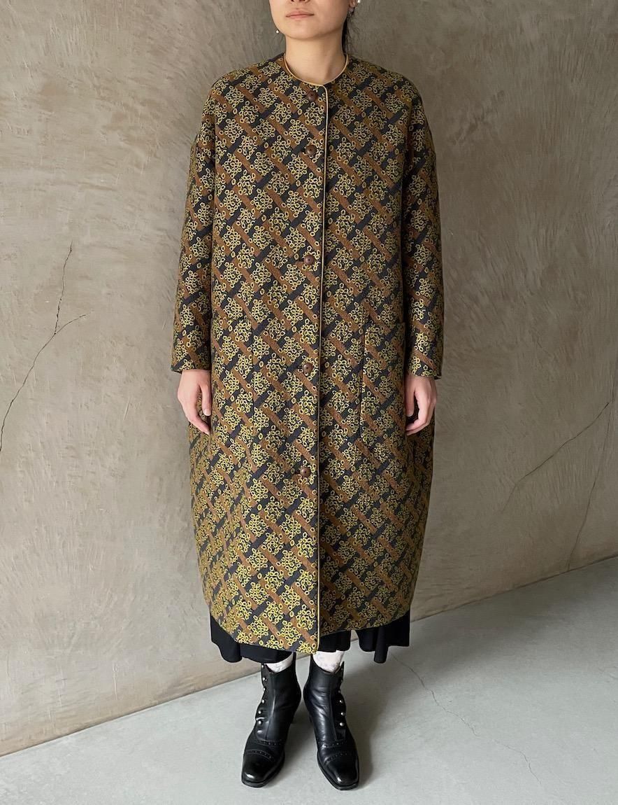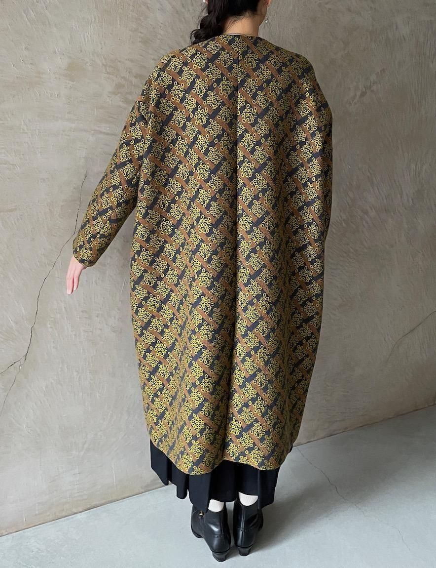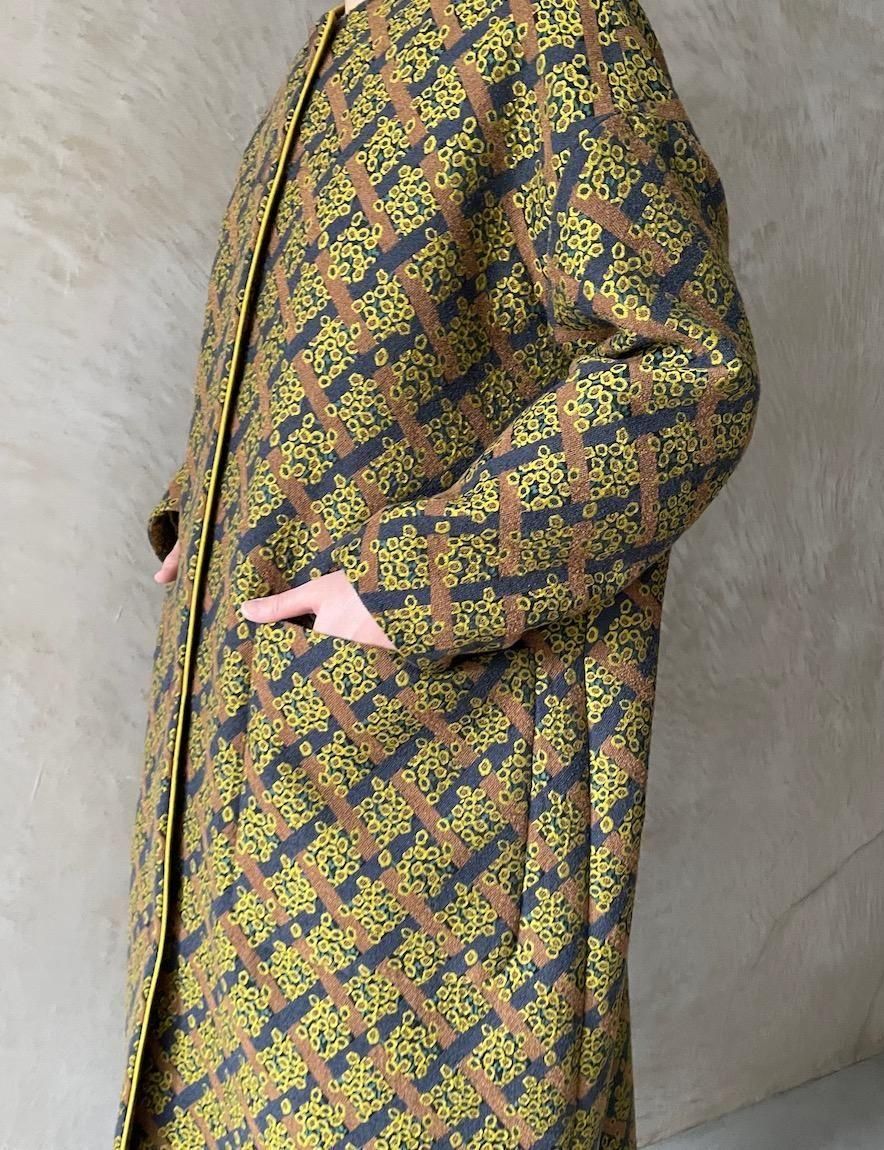 テキスタイルの世界を纏うようなシンプルなコートに仕立てられています。