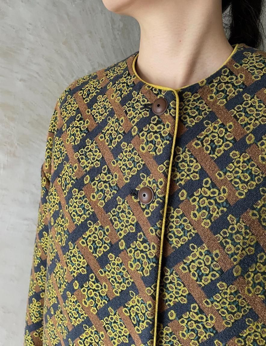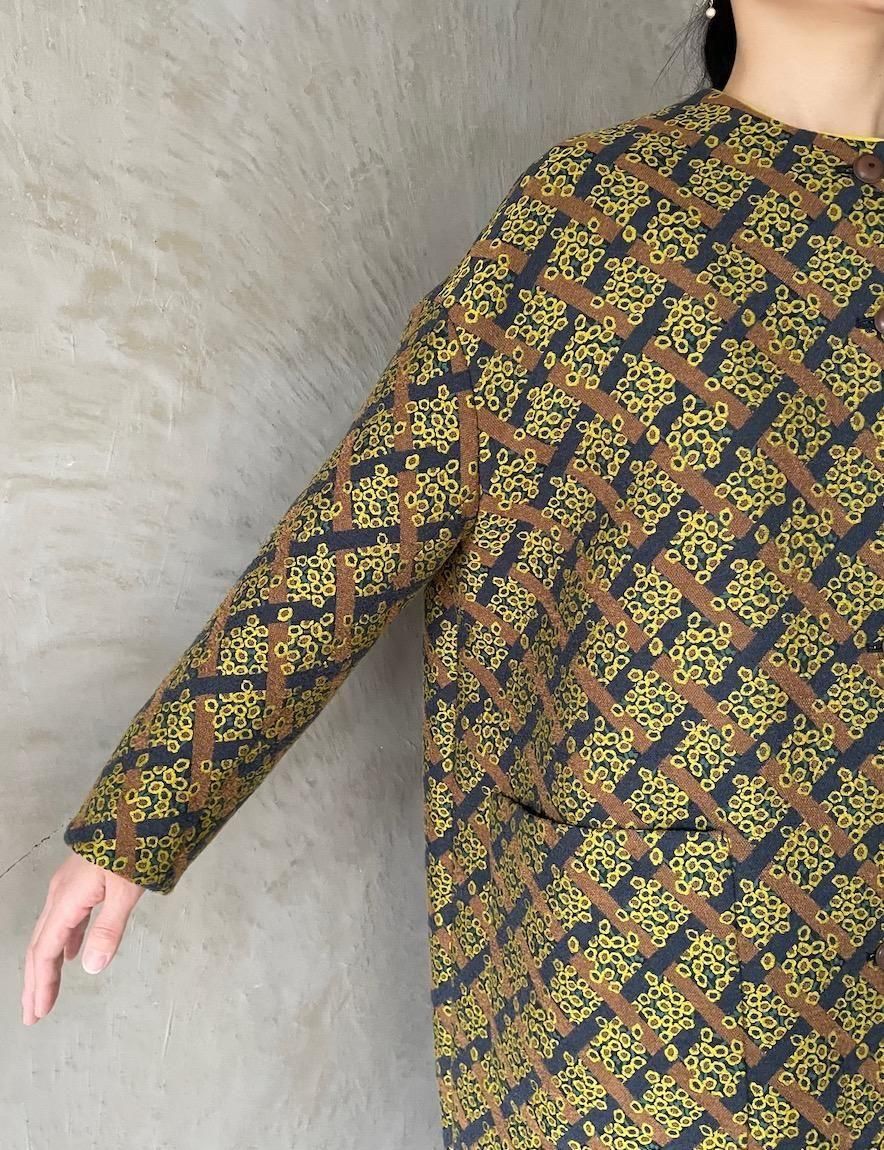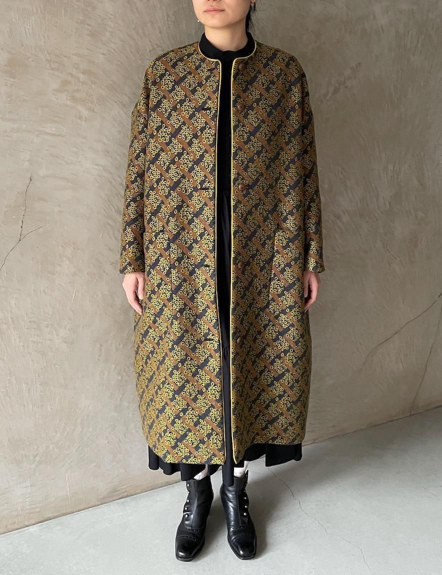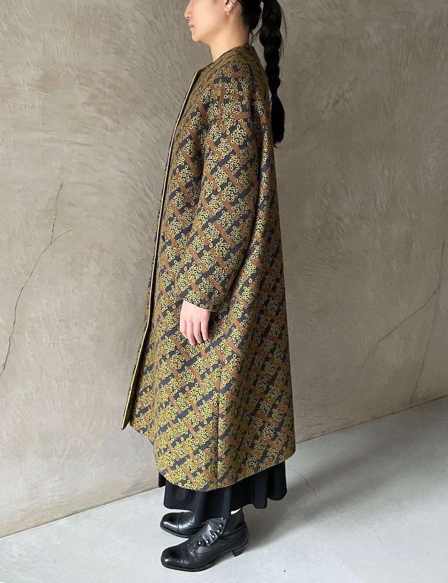 テキスタイルの世界を纏うようなシンプルなコートに仕立てられています。