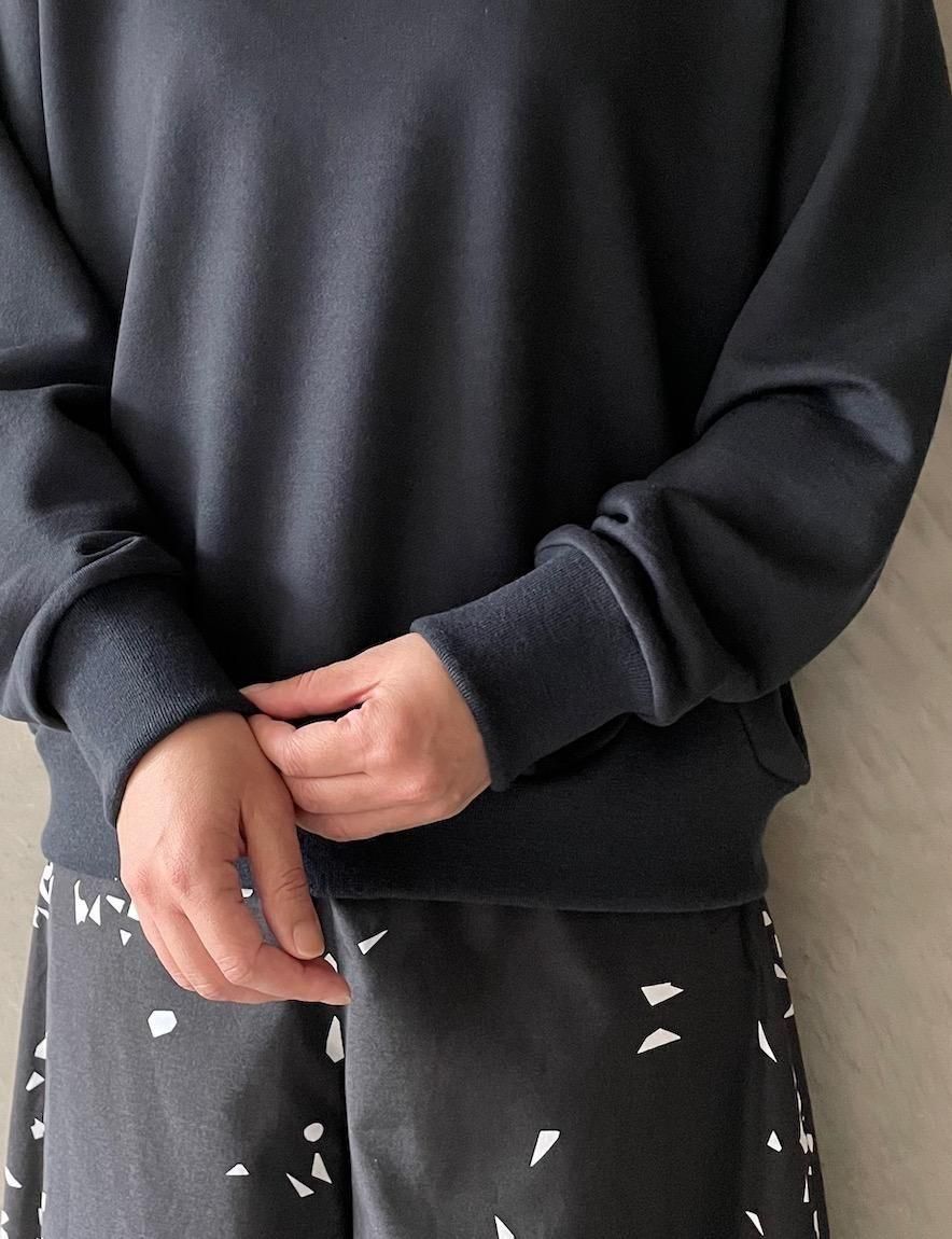 表面はウールの持つ上質感を保ちつつ、肌に触れる裏面は裏毛素材による柔らかな肌触り。