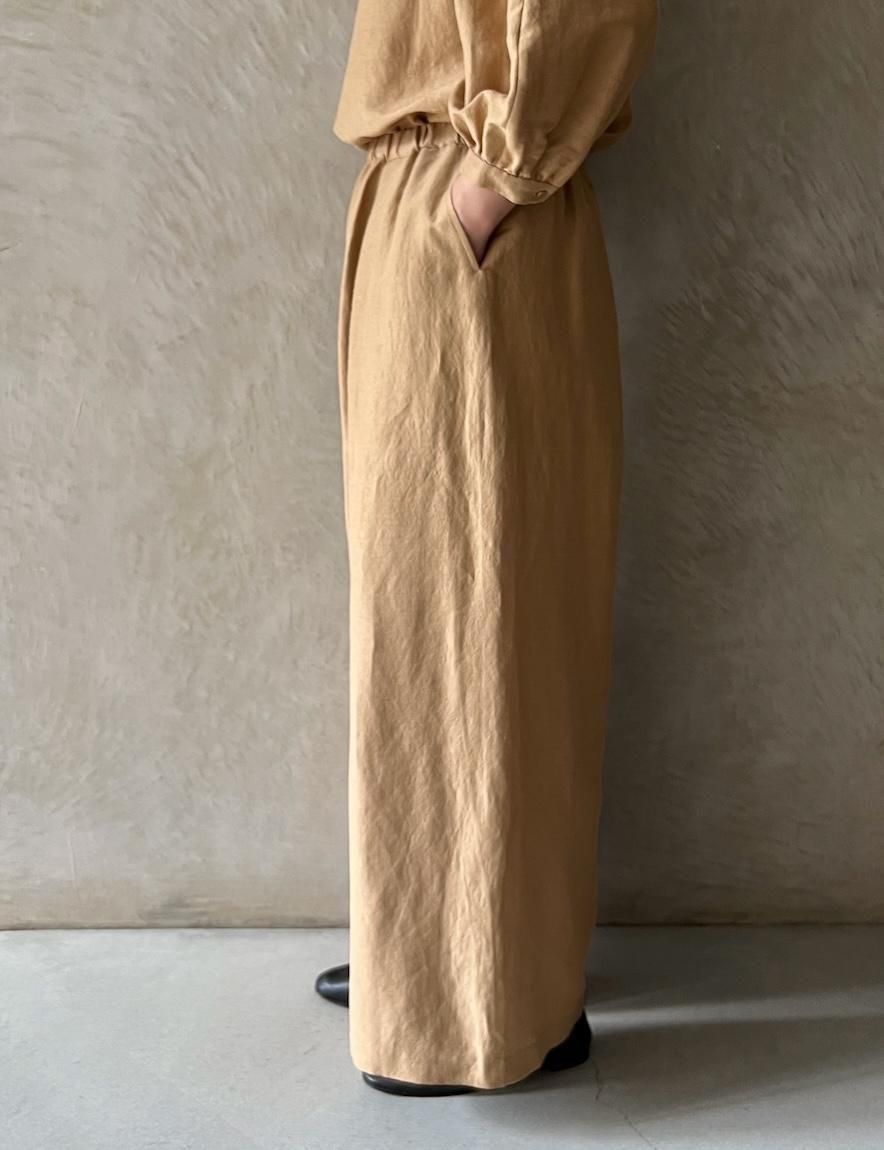 ウエストゴムのカジュアルさを感じさせない品のあるボトムスです。