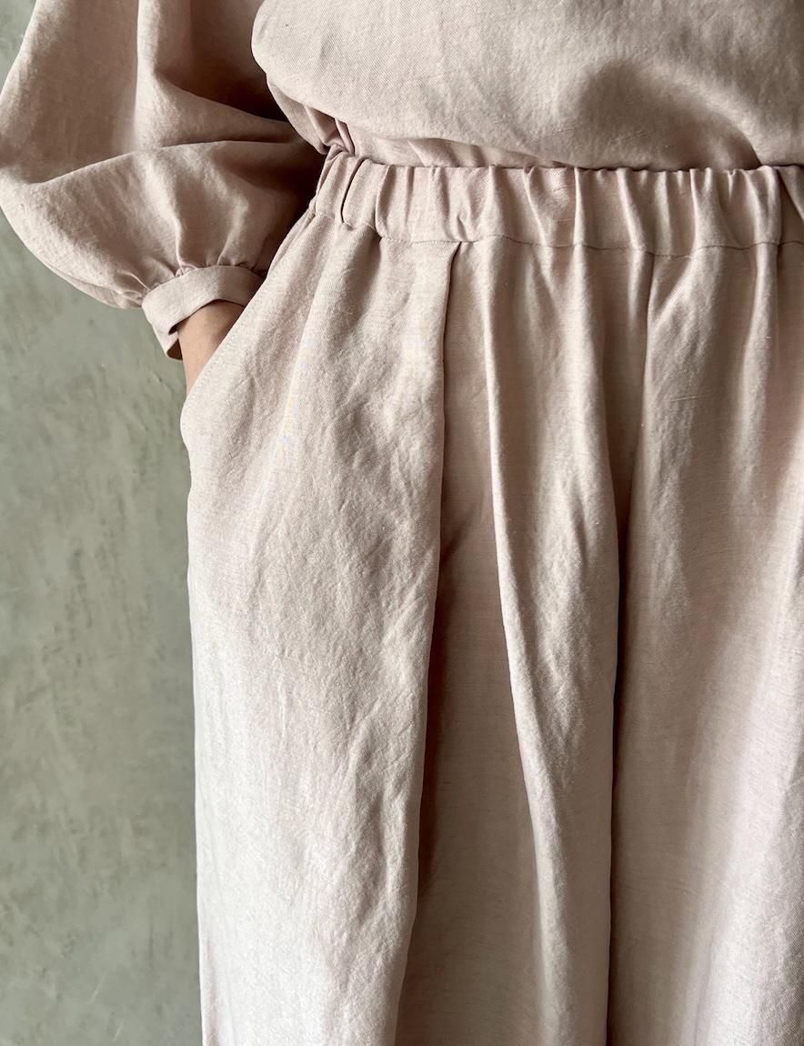 2025aw collectionの新作は、柔らかくふくらみのあるシルクリネン生地です。