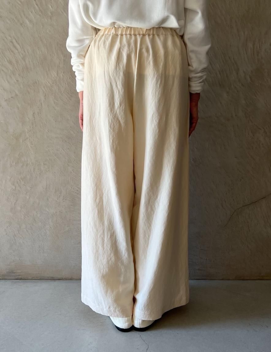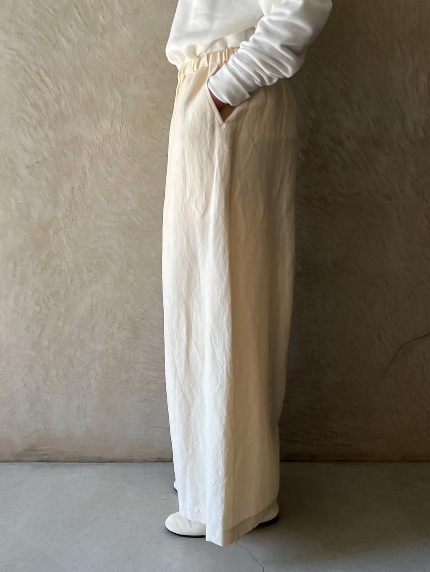 ウエストゴムのカジュアルさを感じさせない品のあるボトムスです。