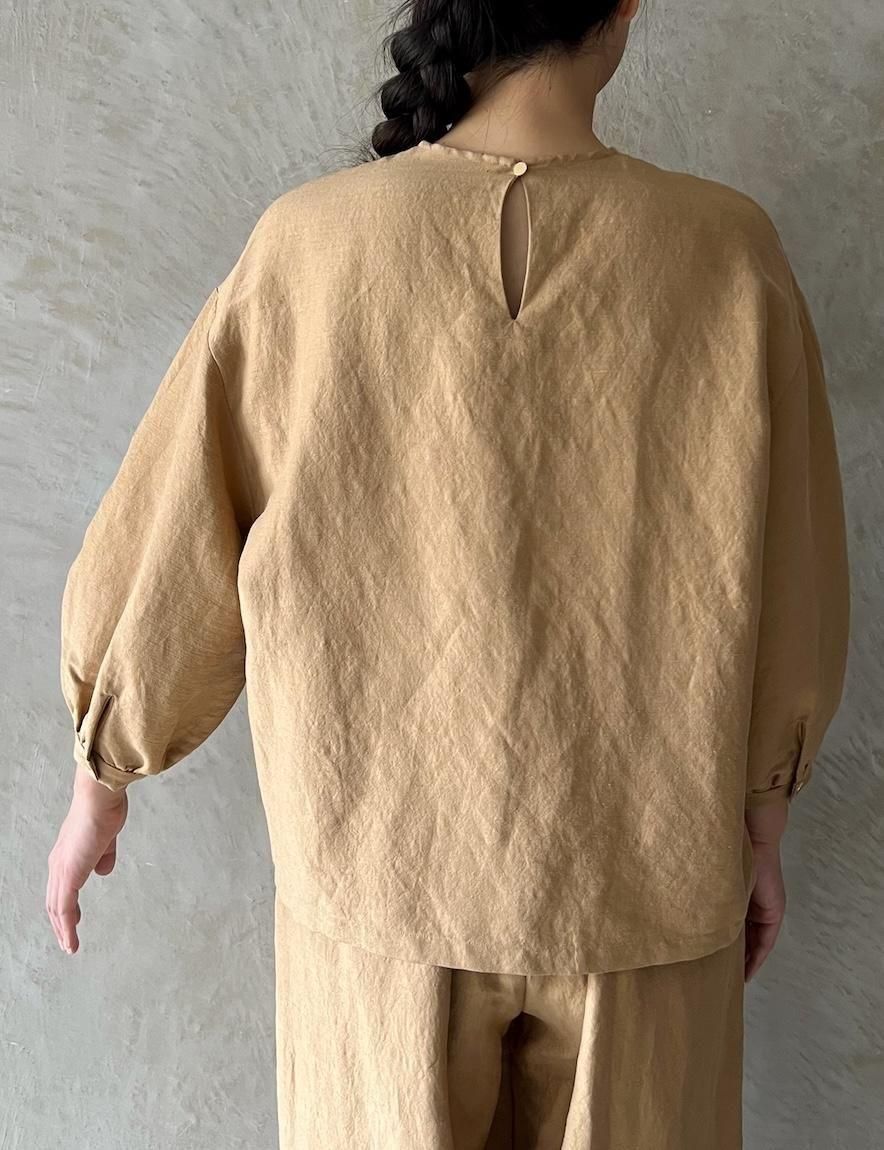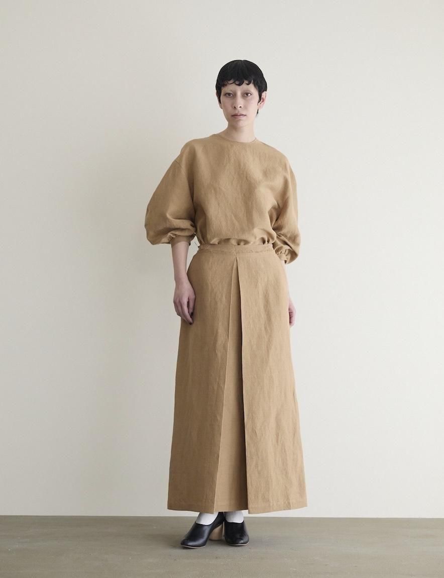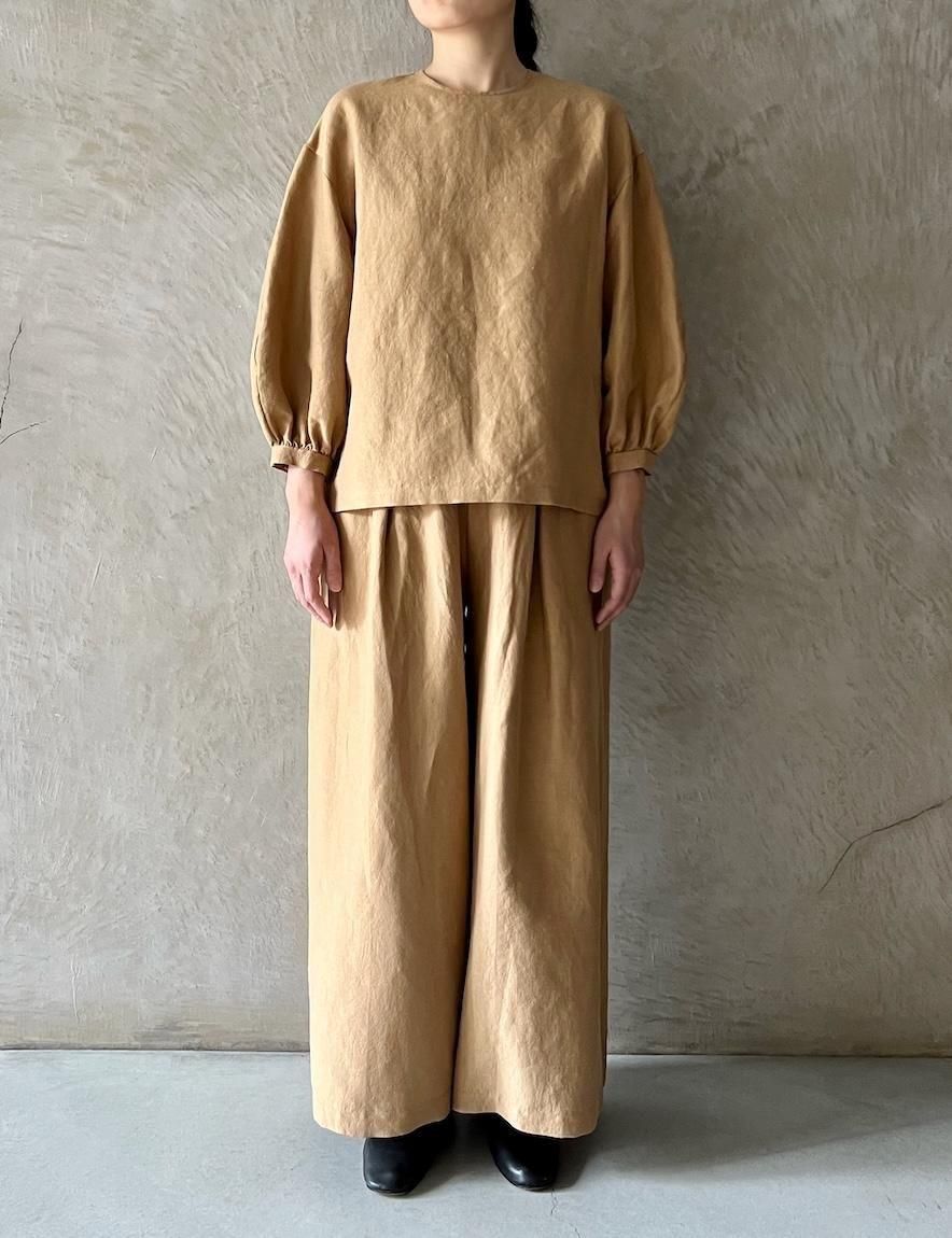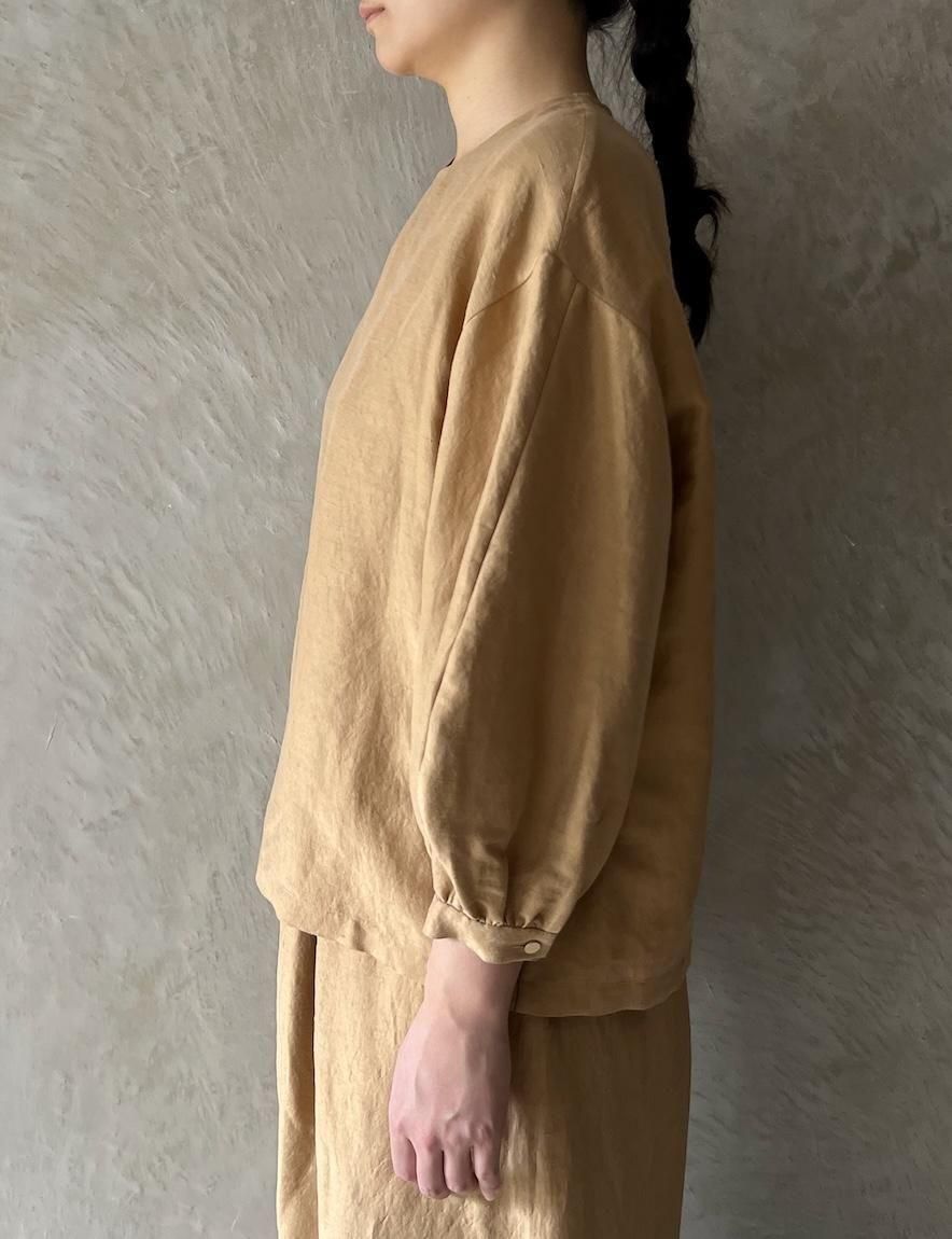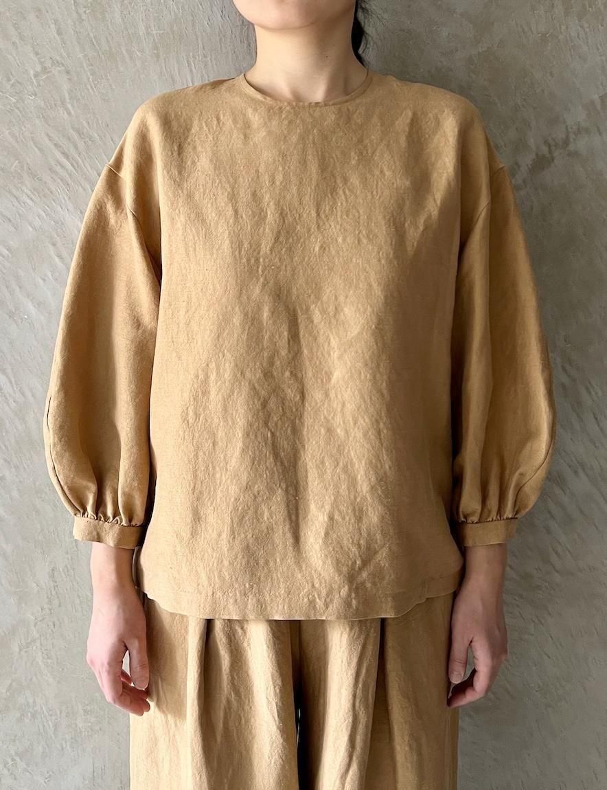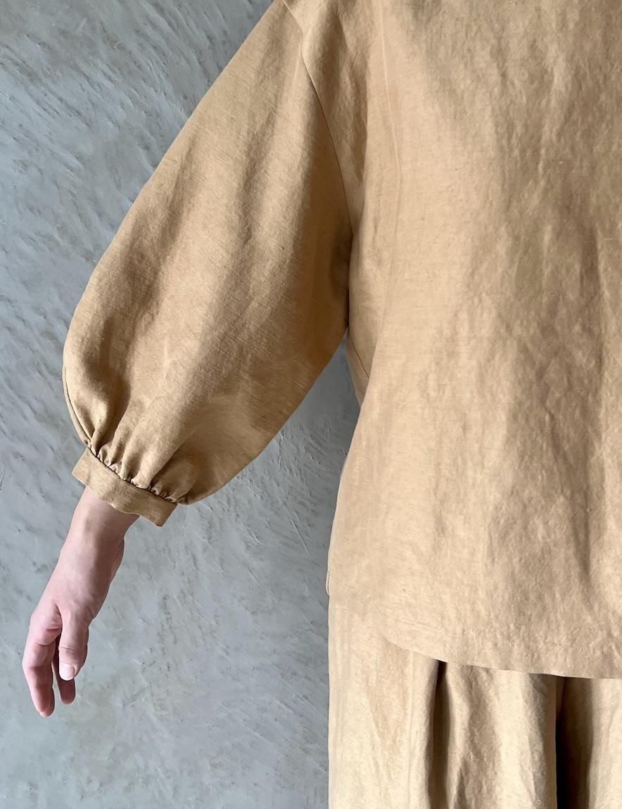 豊かなパフスリーブとすっきりと静かな首元の対比が印象的なpuff sleeve pullover。