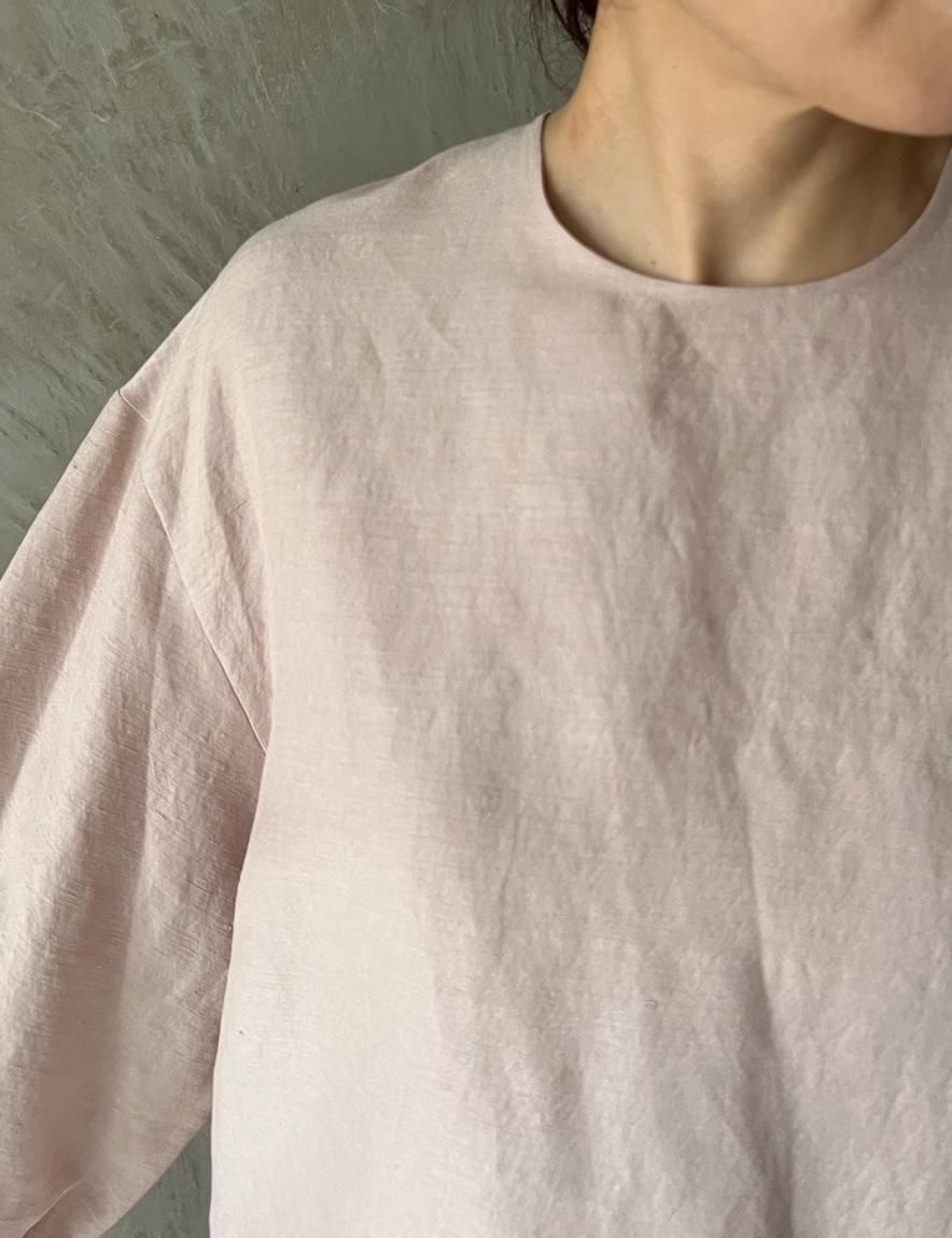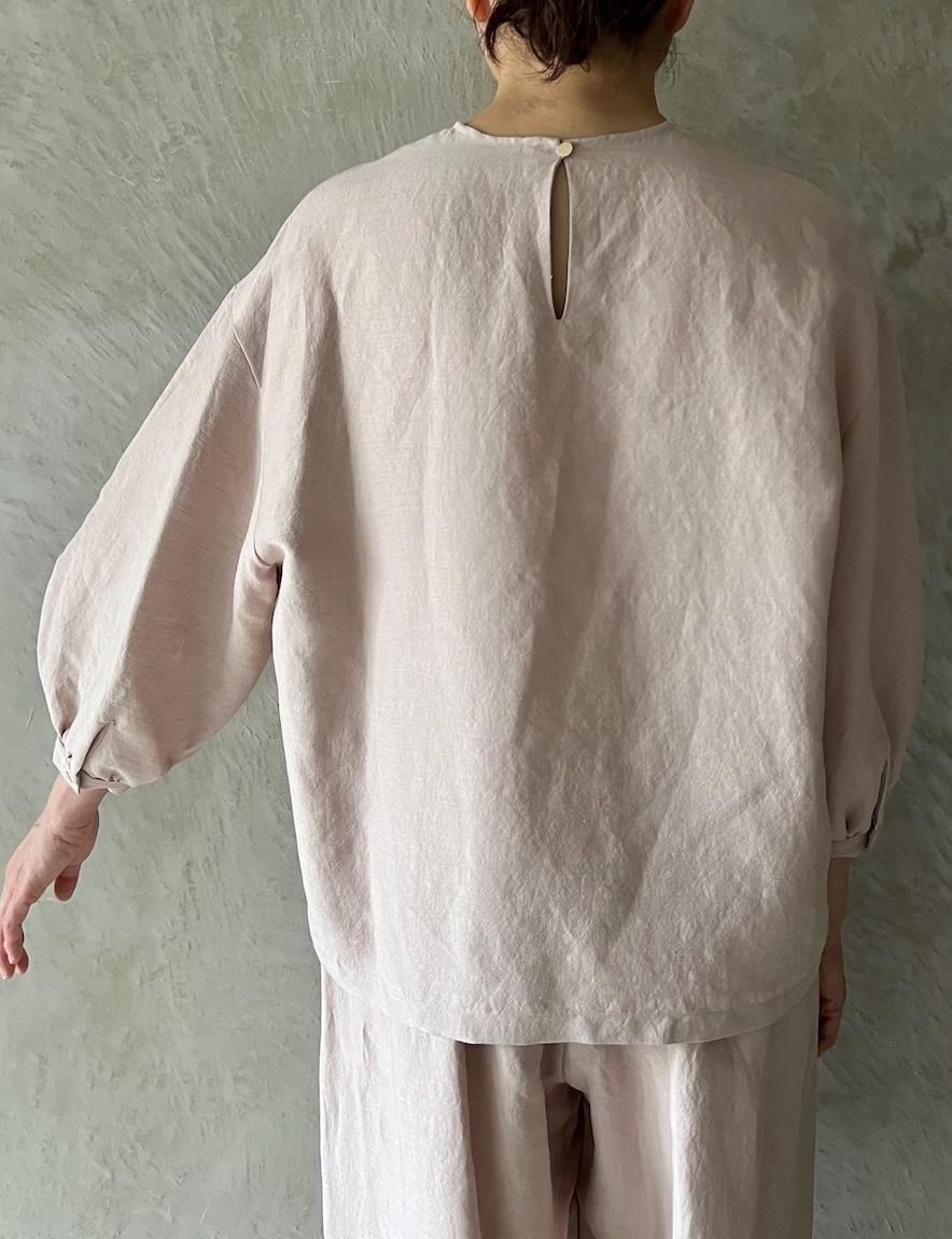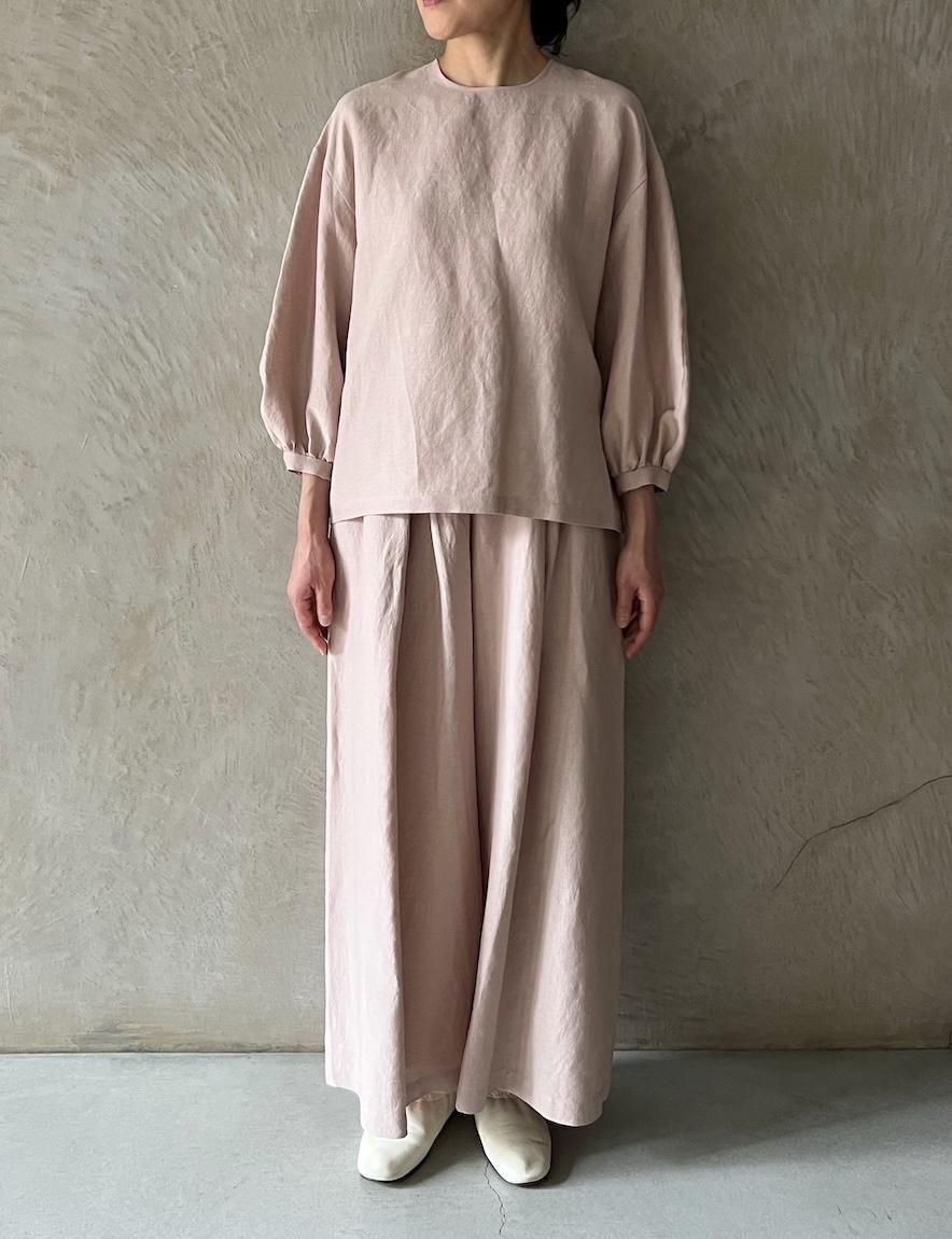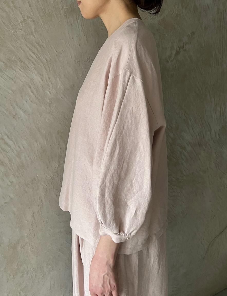 豊かなパフスリーブとすっきりと静かな首元の対比が印象的なpuff sleeve pullover。