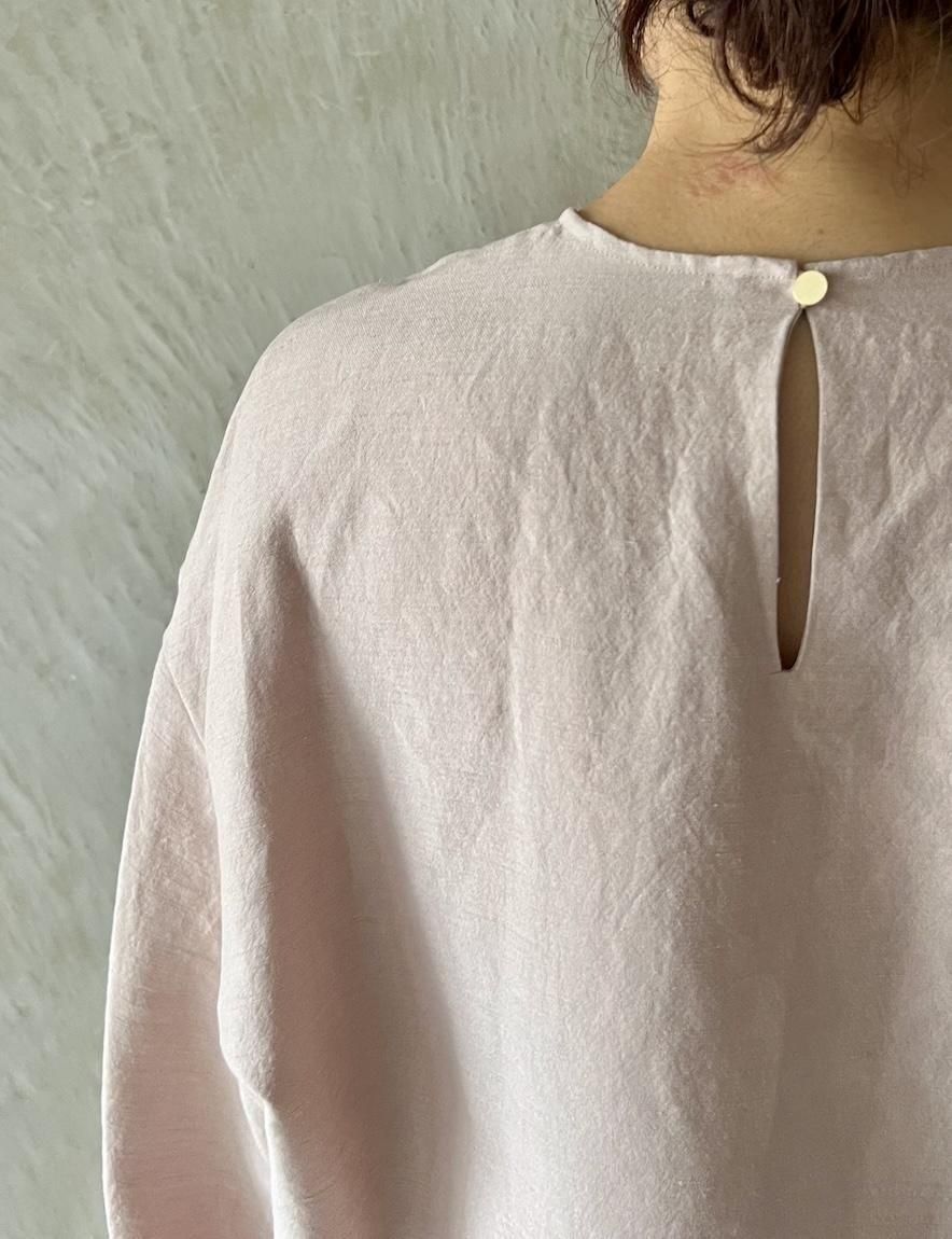 後ろネックポイントに一つだけ添えた金色のボタンが、アクセサリーのように小さな煌めきを添えています。