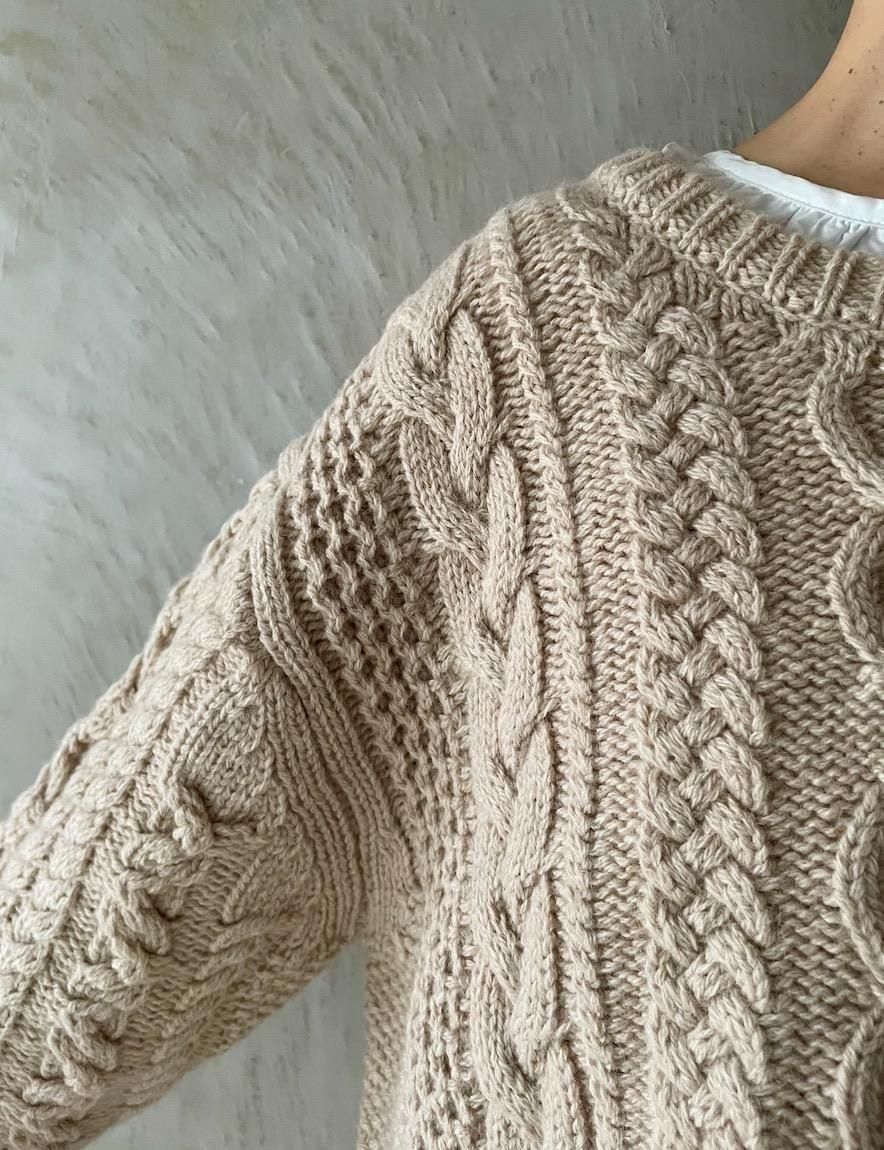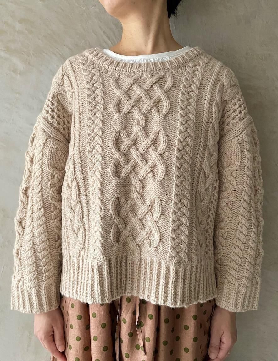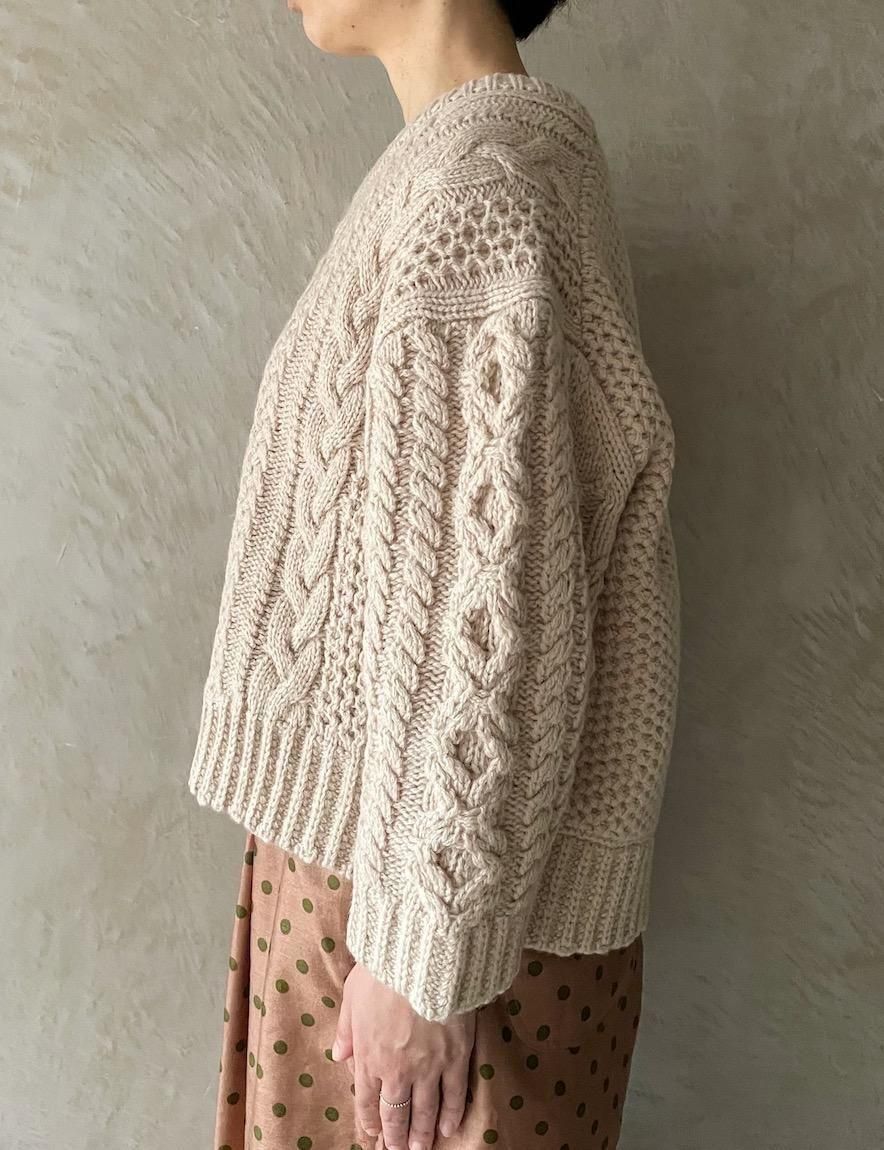 いろいろな編み模様を組み合わせた、表情豊かなアランニット。