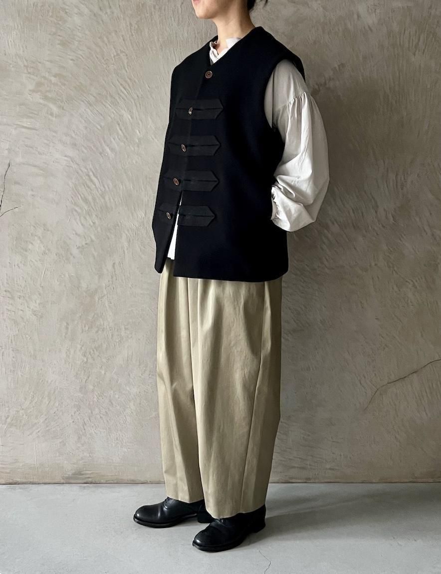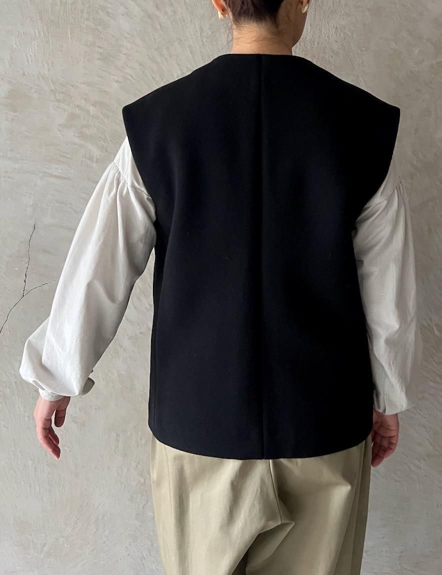 適度に厚みのあるデザインで、アウターとしても着られるベスト。