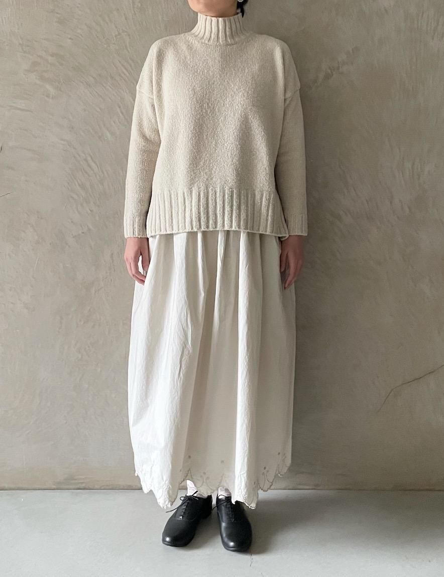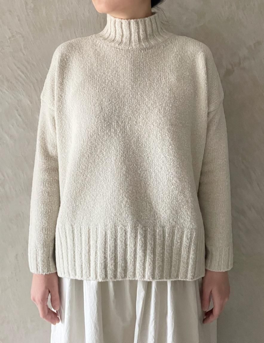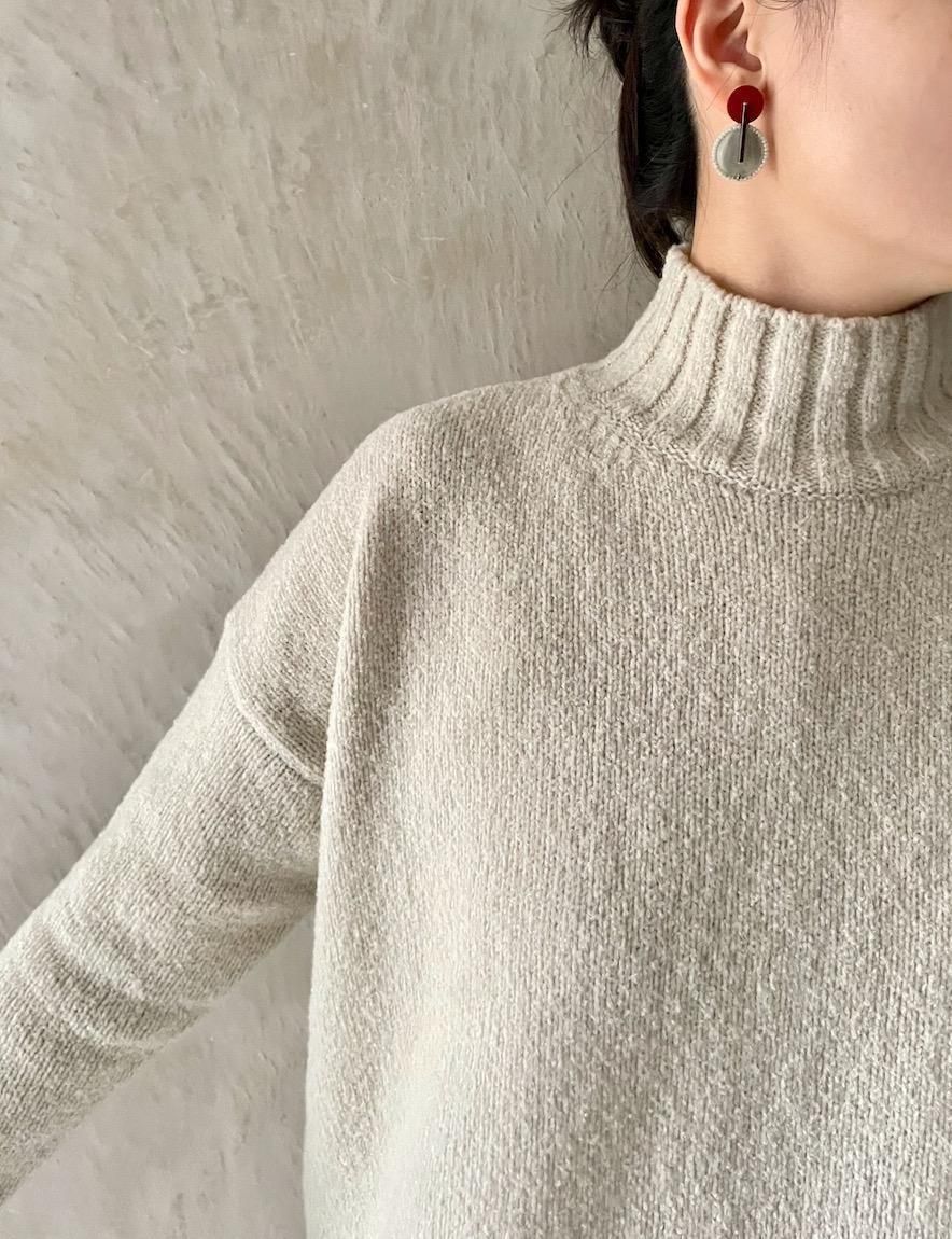 タートルネックはやわらかな生地と、ゆとりを持たせたデザインで首元をやさしく包みます。