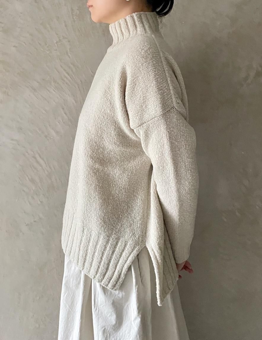 両サイドには長めにスリットが入り、ニットながらも軽やかな印象です。