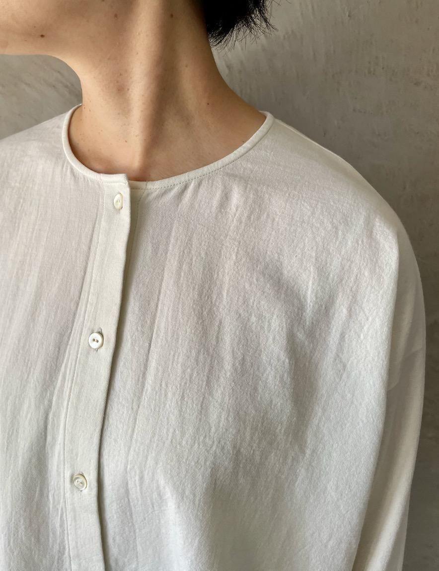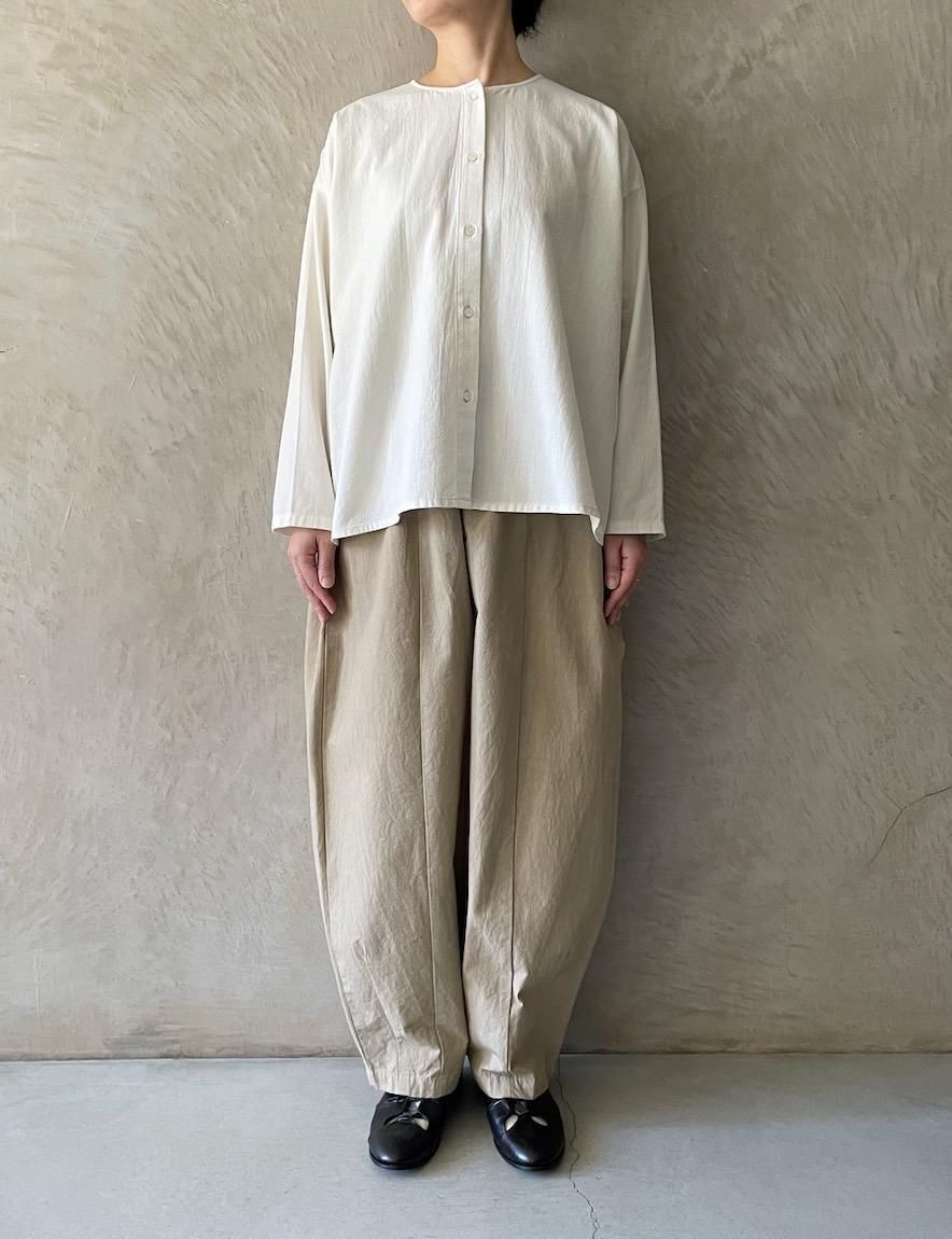 ニットベストやプルオーバー、カーディガンとのコーディネートに重宝するアイテムです。