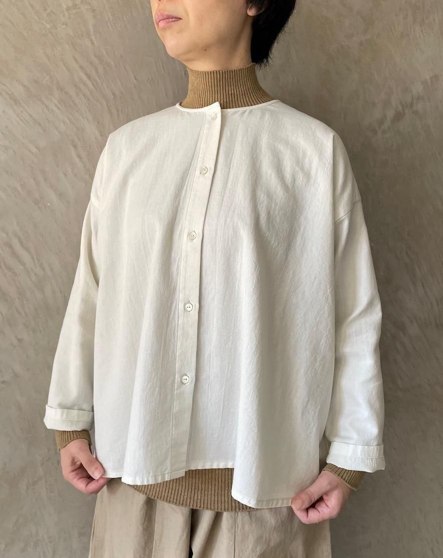 身幅にはゆとりを持たせているので、中にタートルなど重ねていただくスタイルもおすすめです。