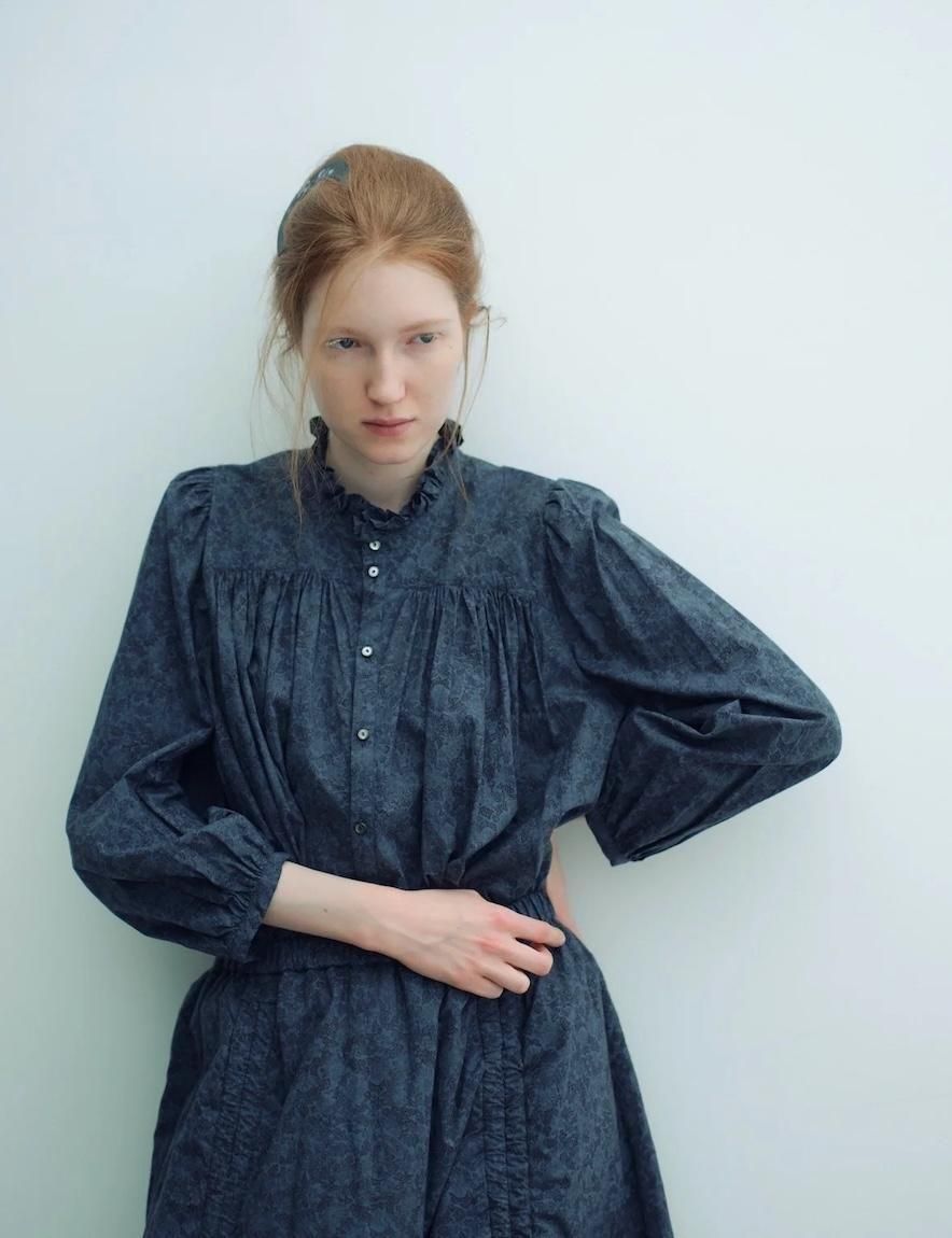 フリル襟や控えめなパフスリーブが上品でクラシカルな雰囲気です。