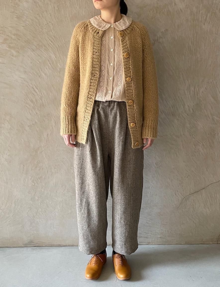 モヘアと暖かなウール糸で、大切に時間をかけて一着、一着、編み上げています。