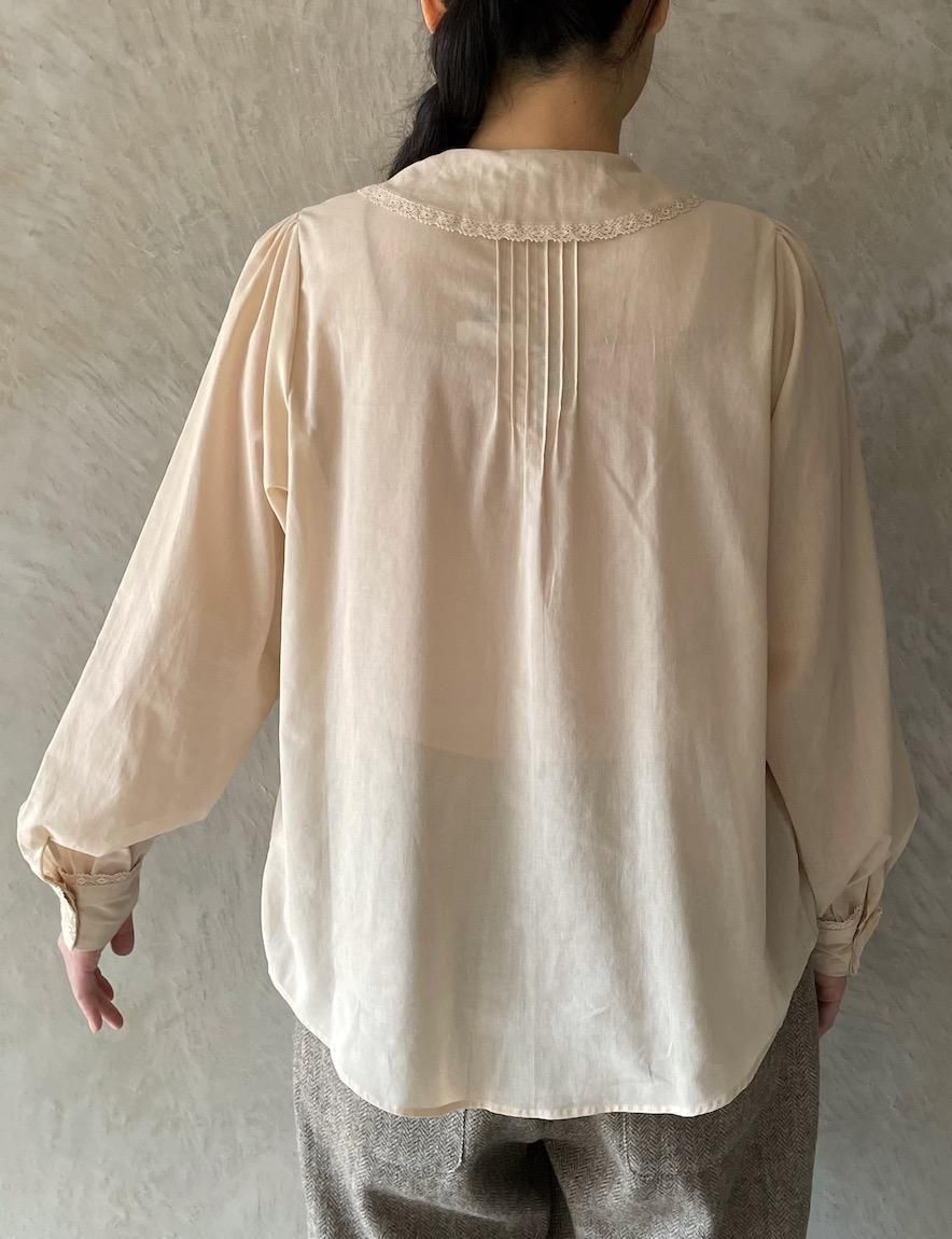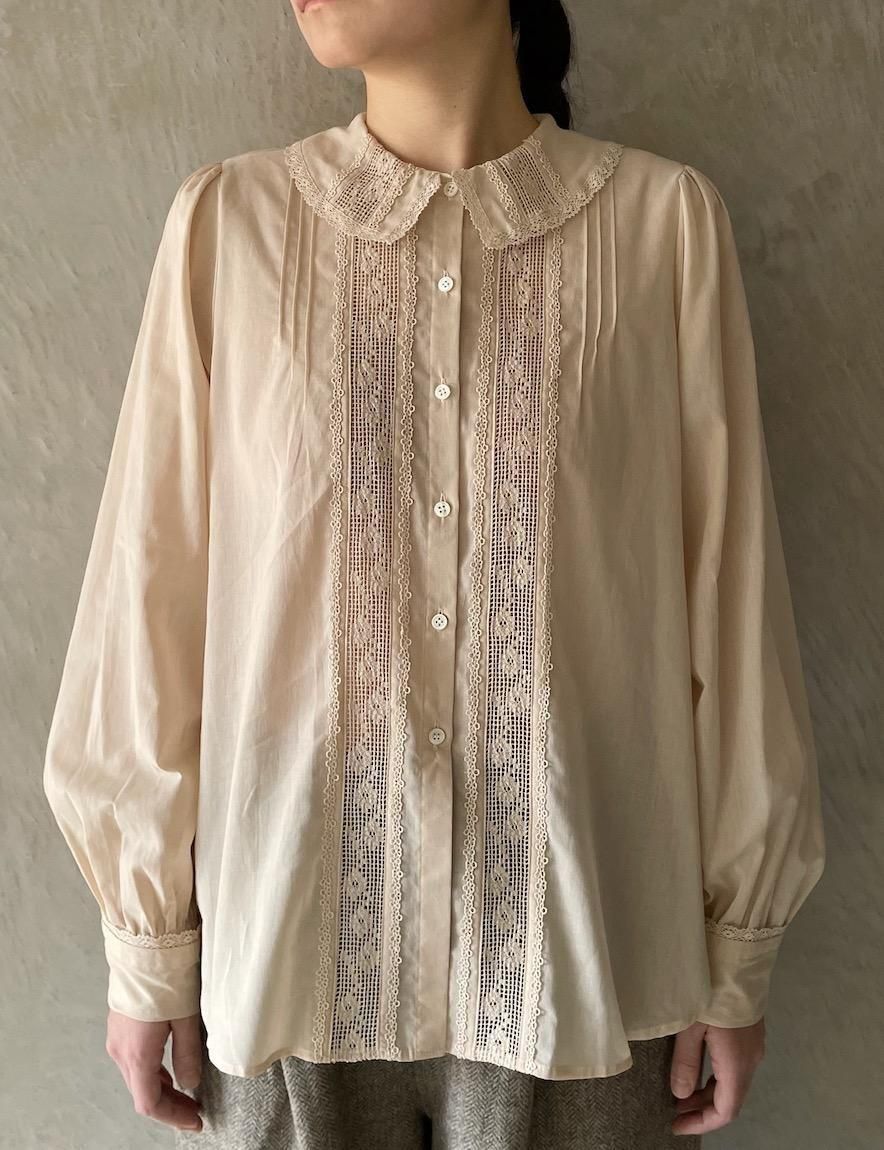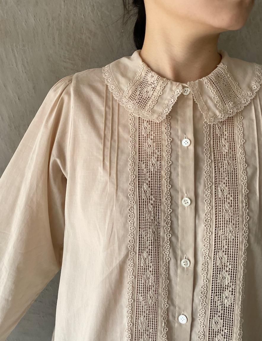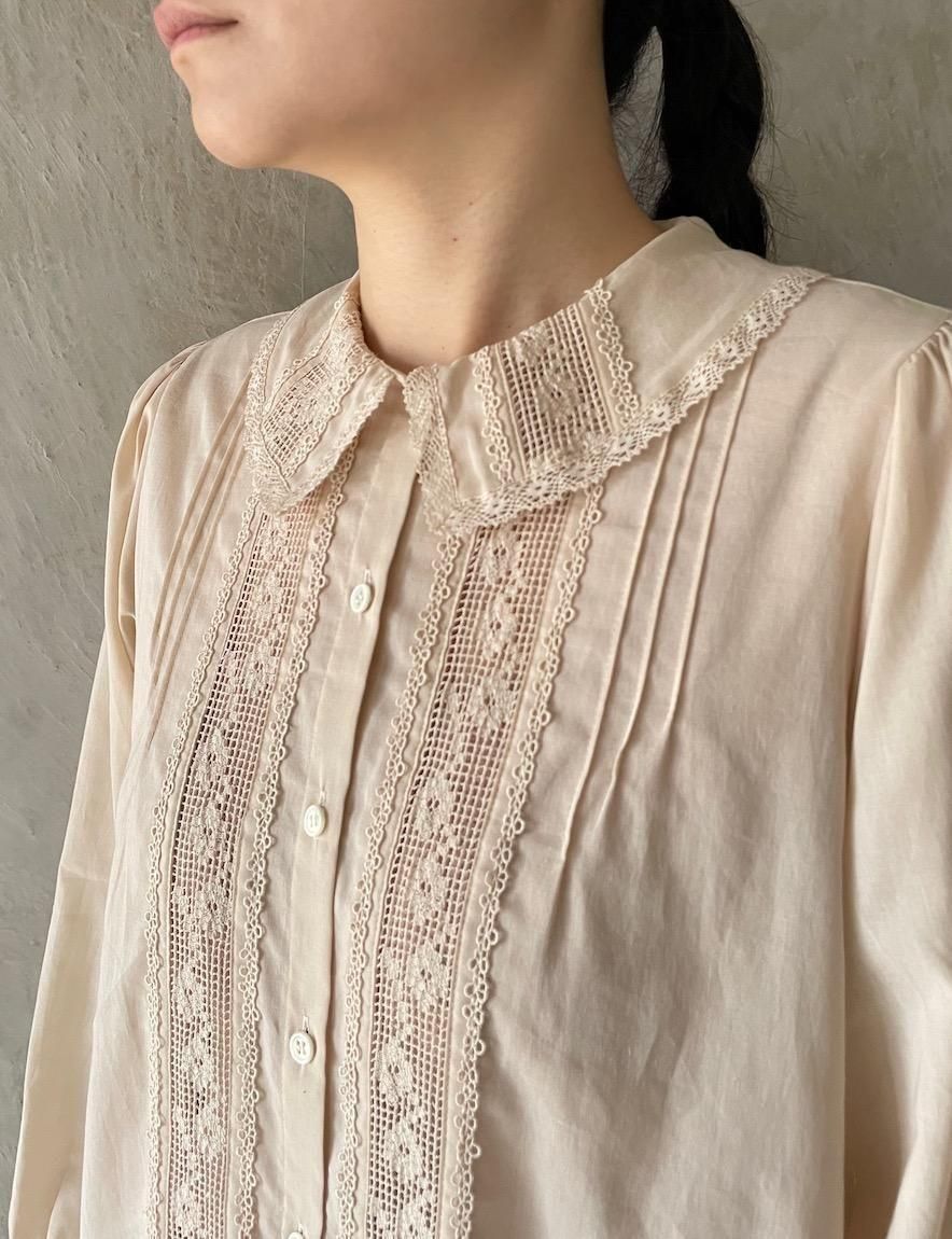 繊細なレースとピンタックのコンビネーションが魅力的なブラウス。