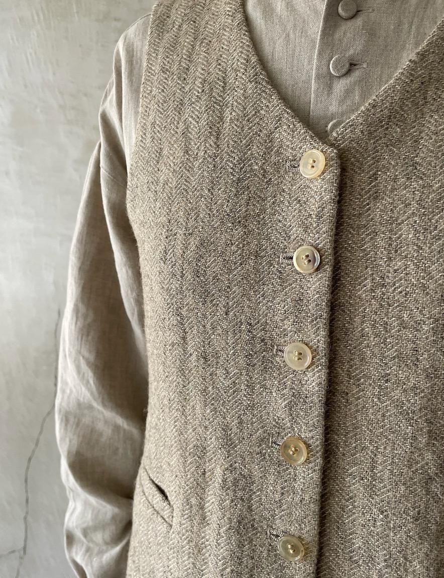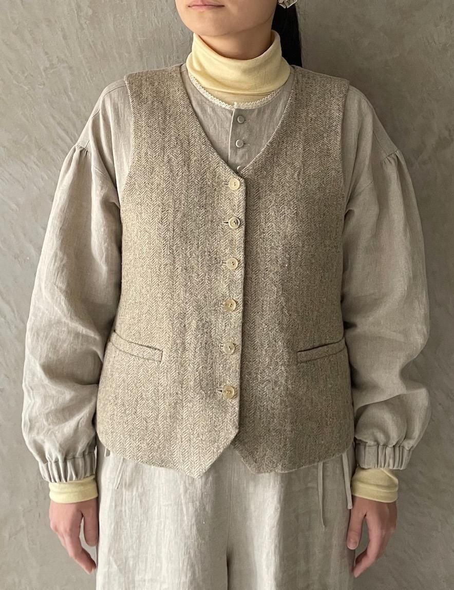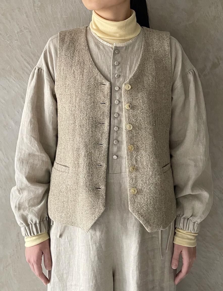 いつもの装いに重ねるだけで、すっきりとまとまるベスト。