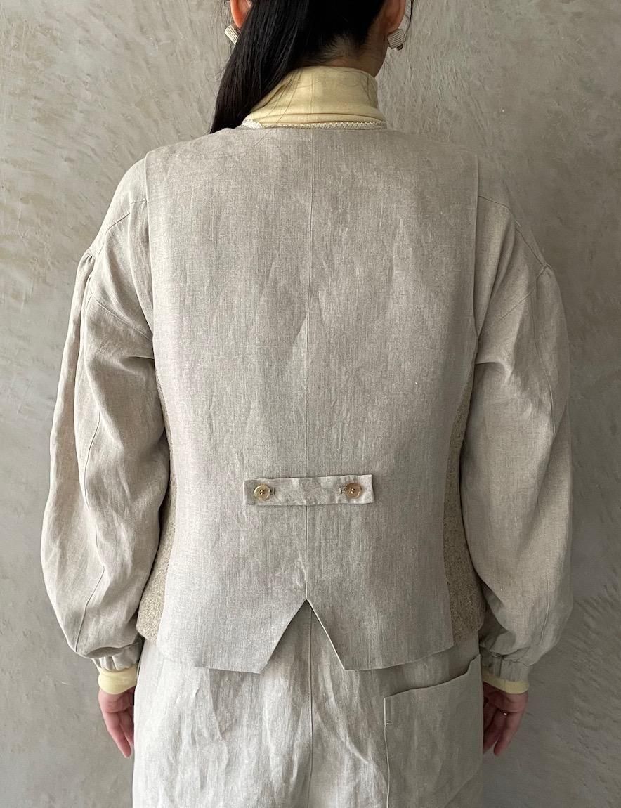 前身頃と後身頃は素材を変え、後身頃は共地の二重で仕立てています。