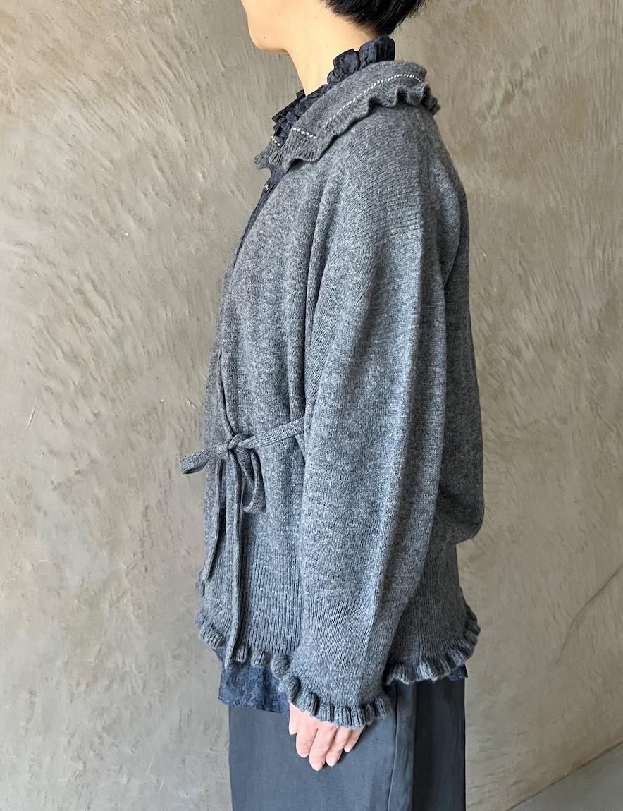 愛らしさのあるカーディガン。小さなフリルが乙女心をくすぐります。