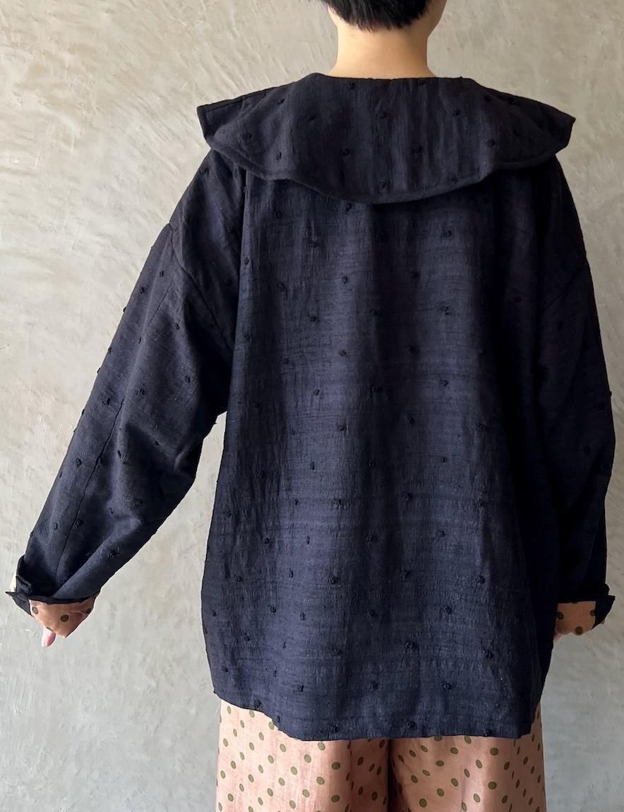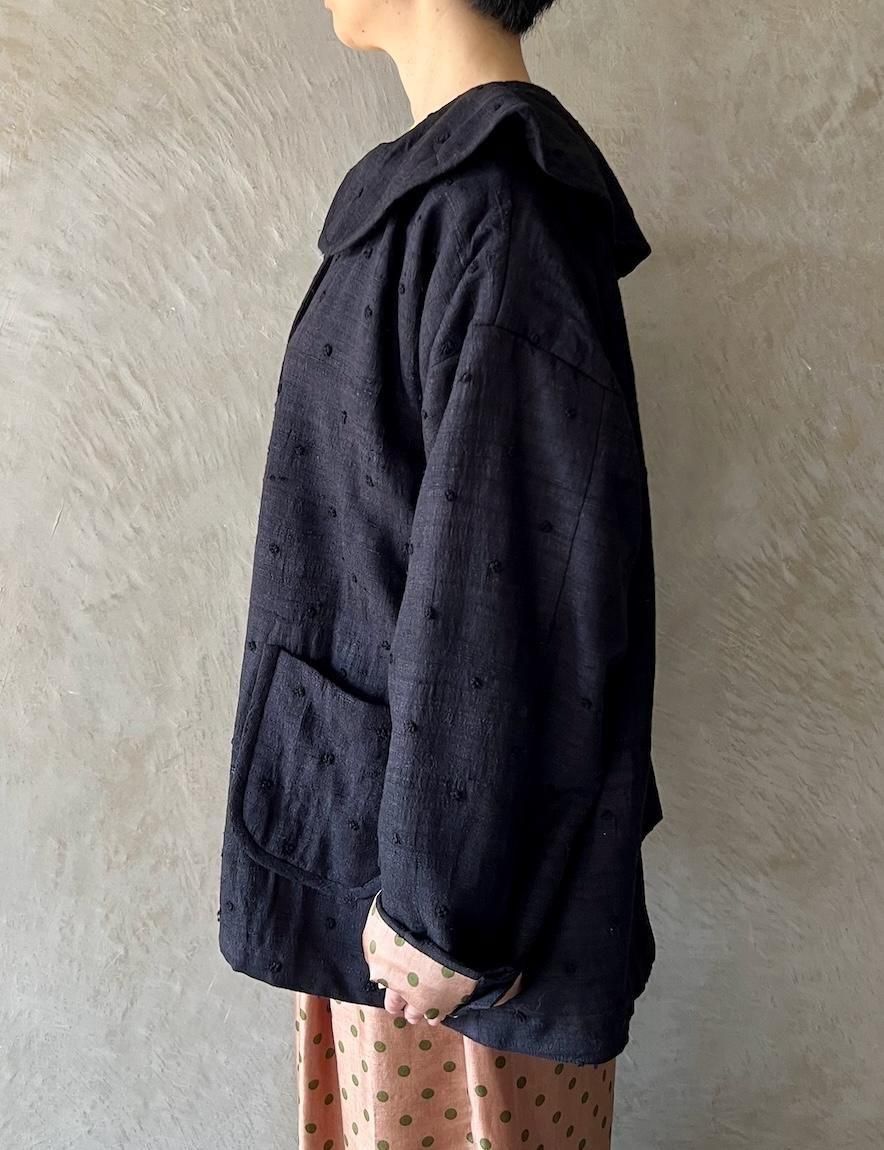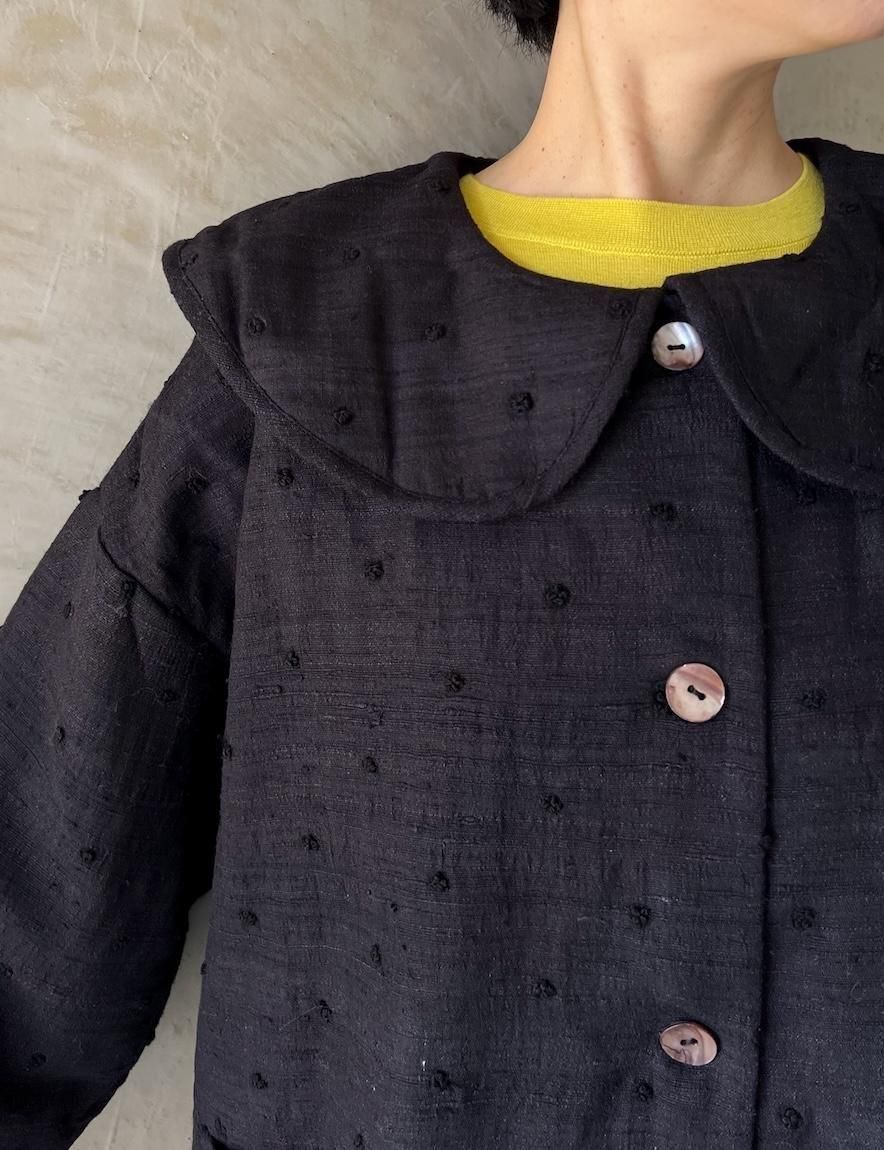 Khadi Thick Silk & Embroidery Round Collar Blouson (Black)
