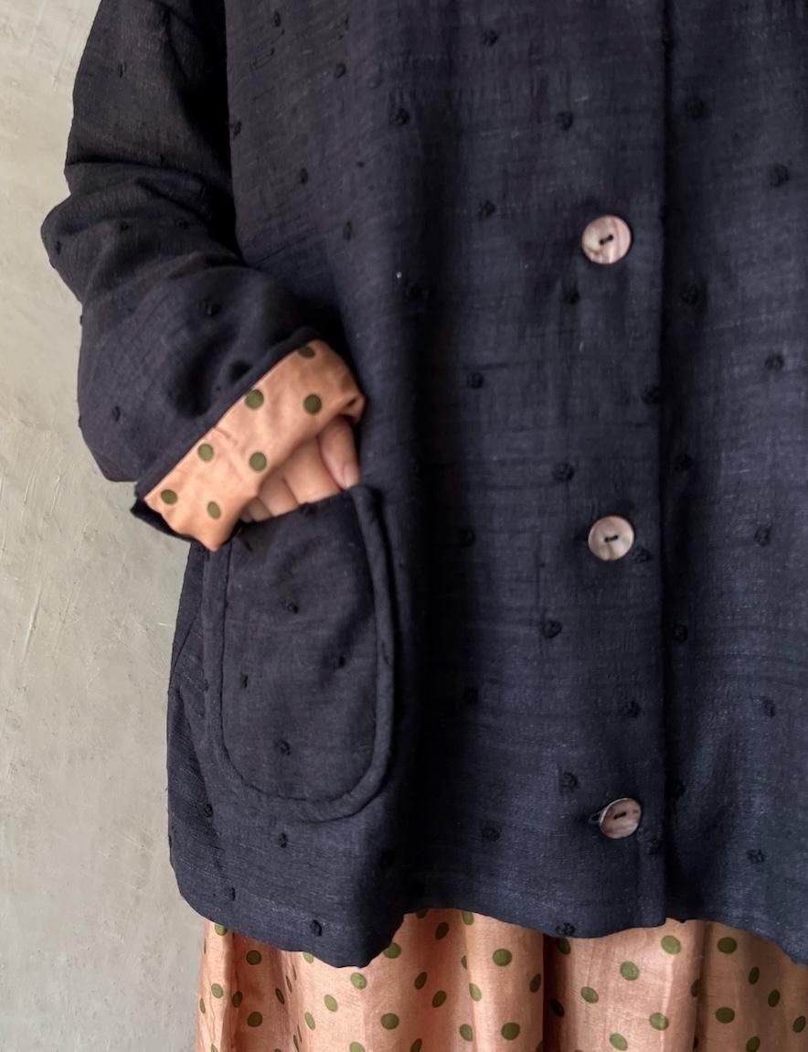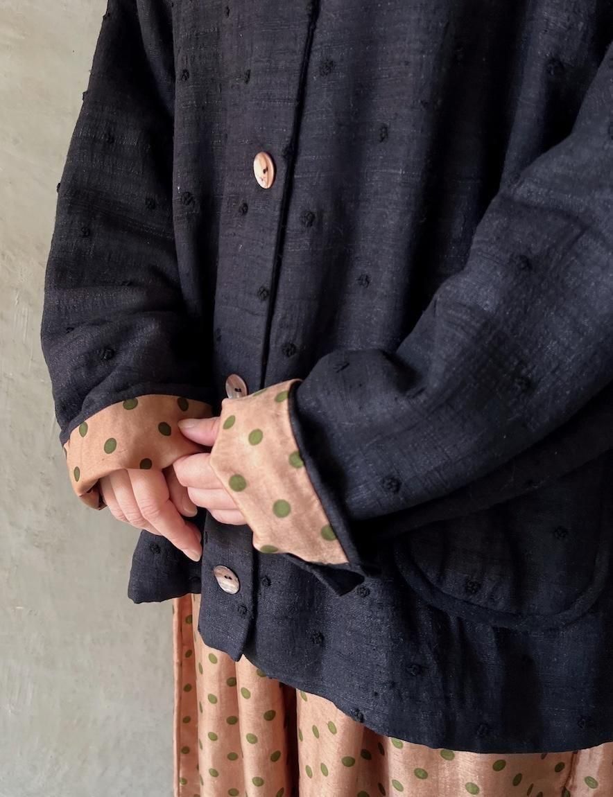 袖裏地はドット生地が配されていて、袖をロールアップした着こなしもおすすめです。