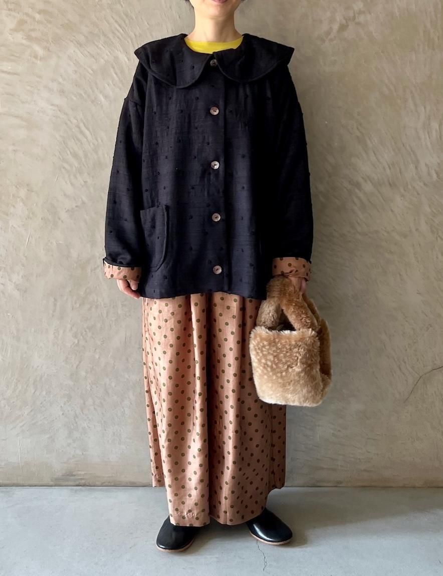 そのベース部分に同色のシルク糸でドットの手刺繍が施された愛らしいテキスタイル。