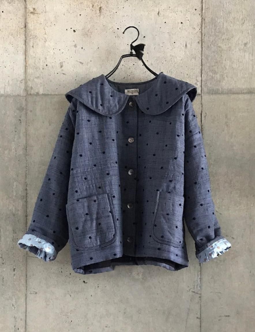 袖裏地はドット生地が配されていて、袖をロールアップした着こなしもおすすめです。
