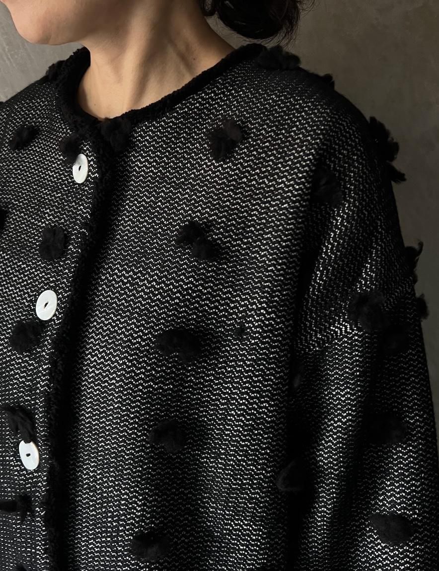 ふわふわとしたリボンのような刺繍が全体に散りばめられています。