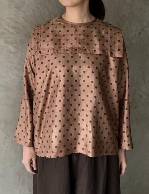 きちんとしたつまり気味の首元に対して、ゆとりのある身幅はくつろいだ雰囲気。
