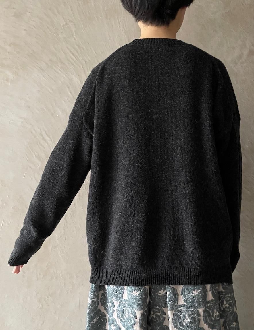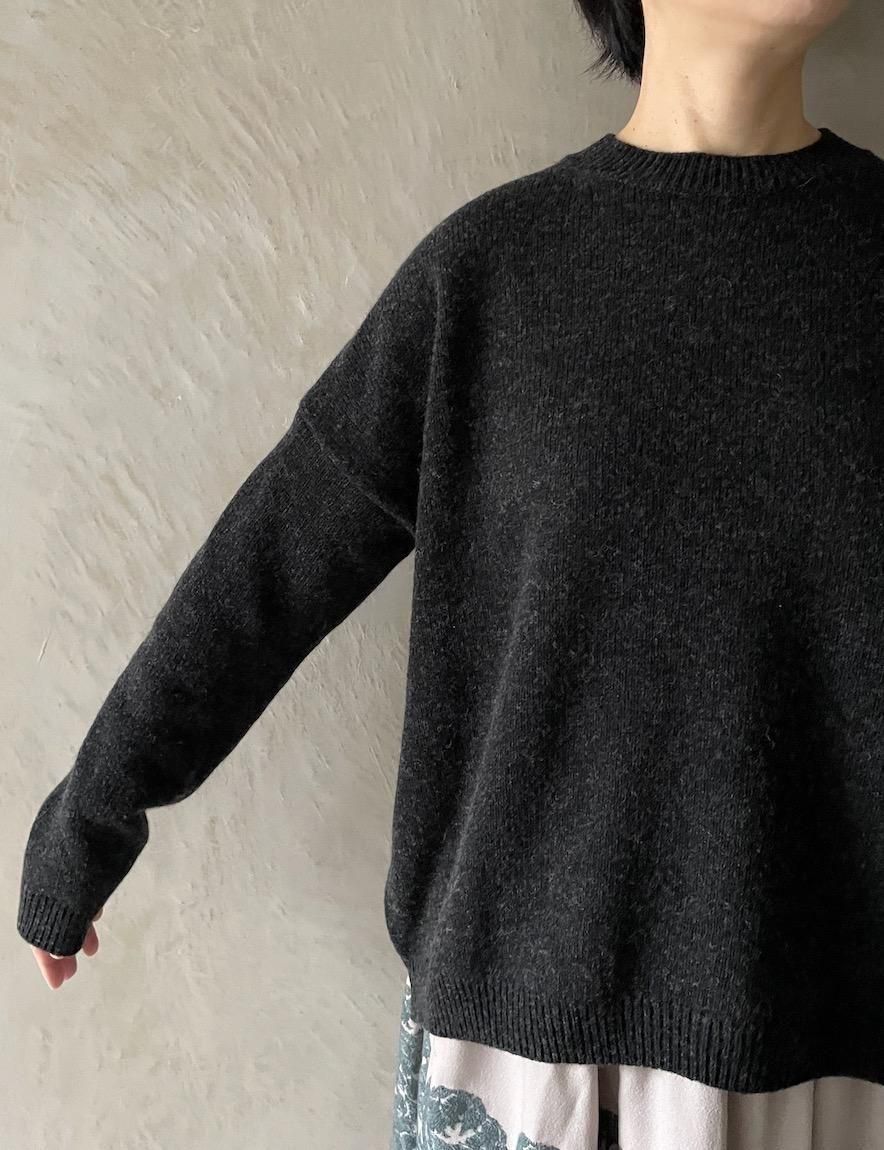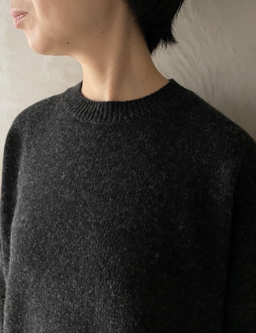 シンプルな形で様々なスタイルに合わせやすいニットです。