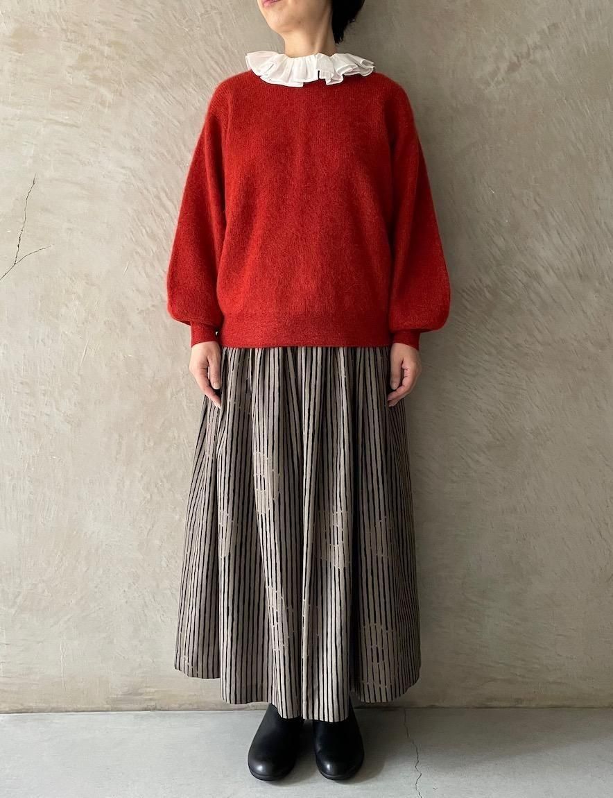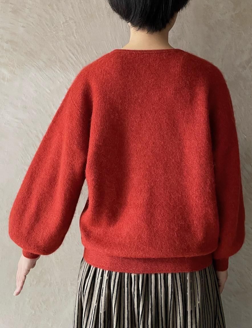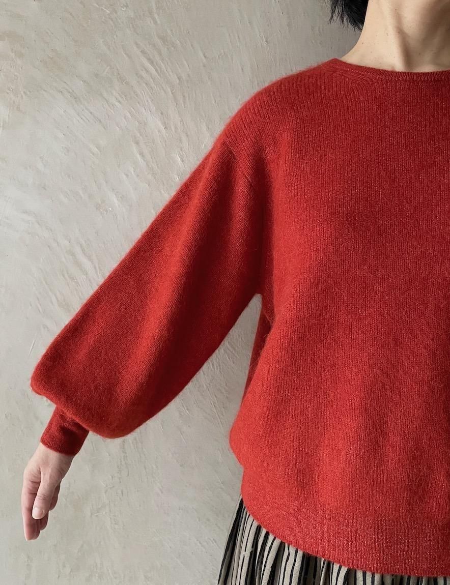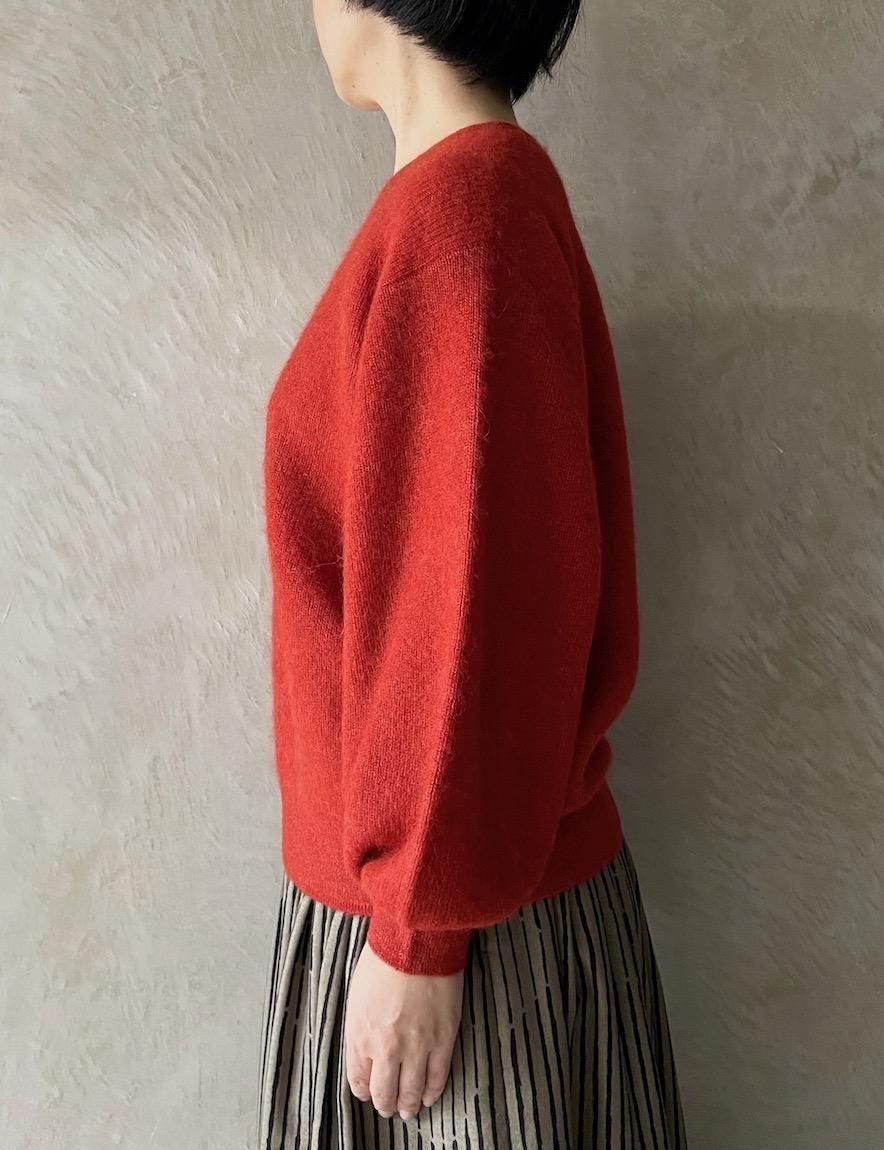 GATHER SLEEVE ALPACA KNIT PULL OVER(ORANGE)