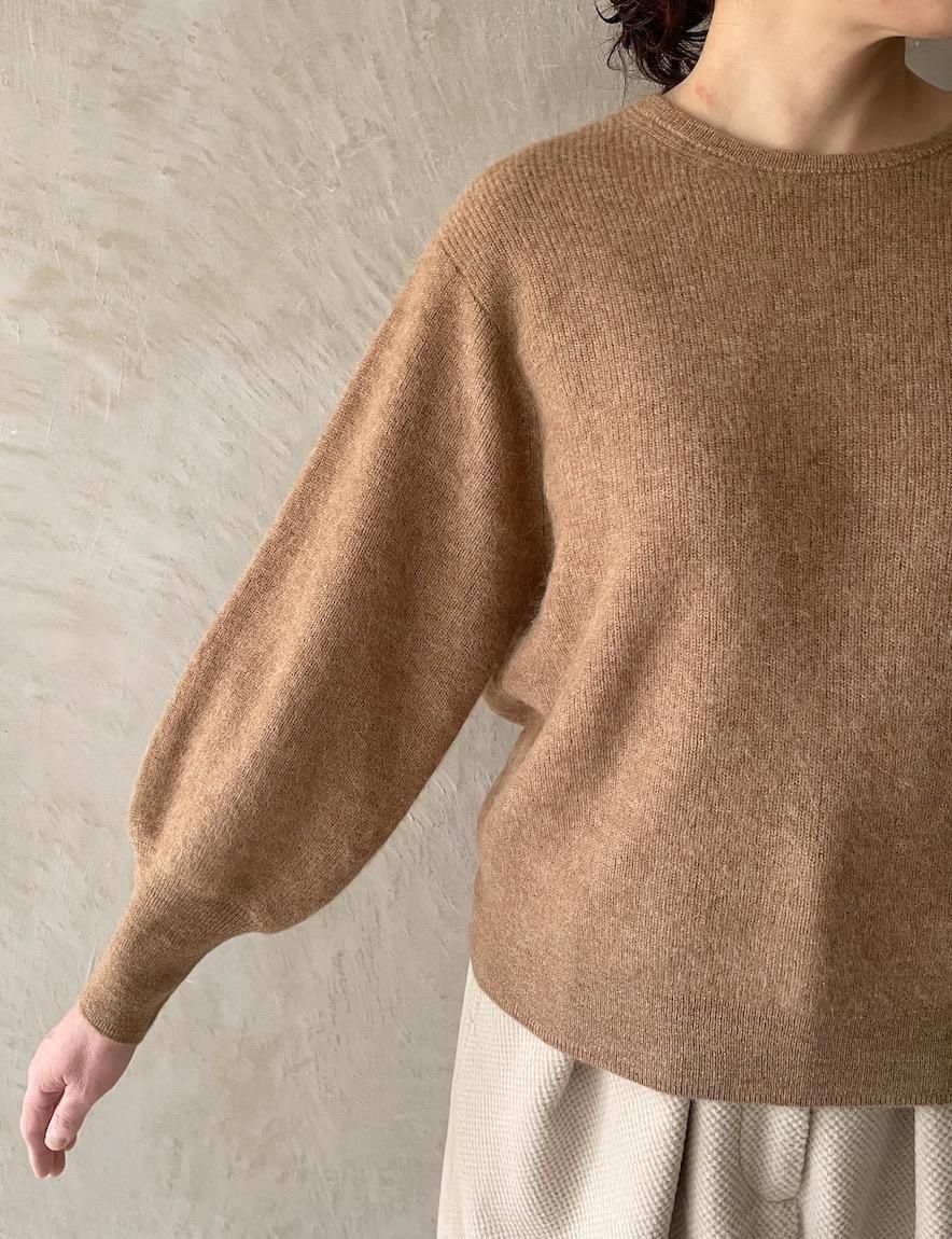 GATHER SLEEVE ALPACA KNIT PULL OVER(MOCHA)