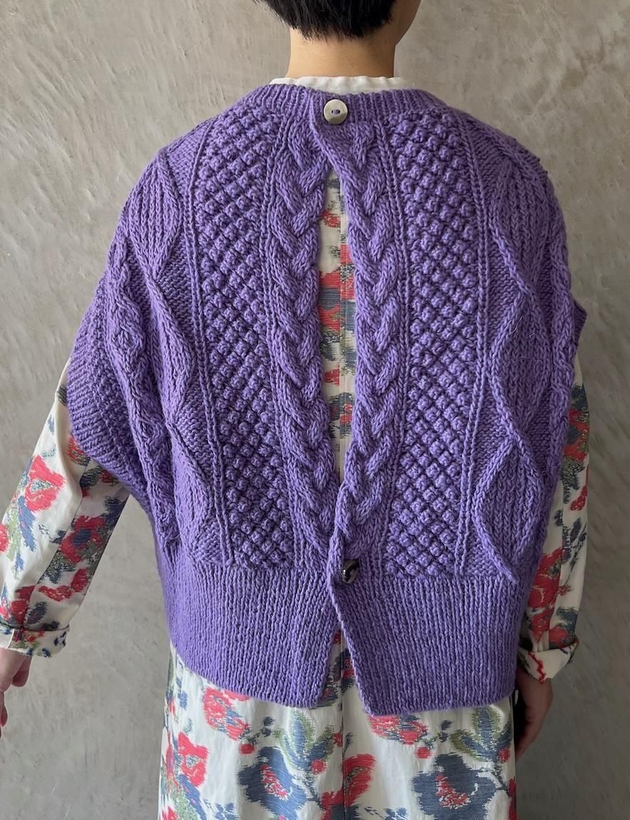 また衿ぐりを後ろにずらす事で、ショート丈のV開きベストとしても着ていただけます。